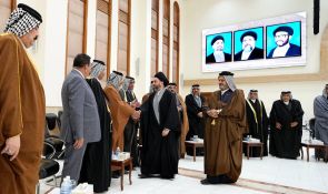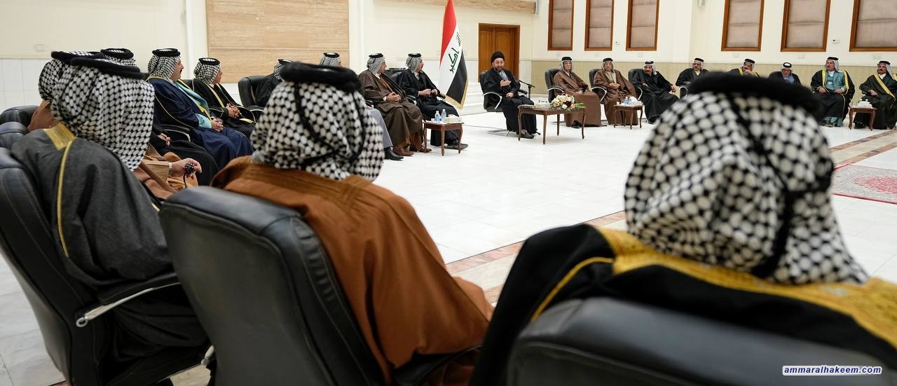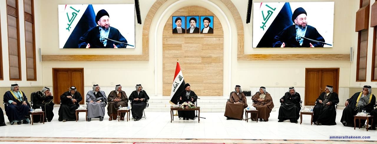 سماحته تناول بعد استماع إلى مداخلات الشيوخ والوجهاء القيّمة تطورات المشهد السياسي في العراق وطبيعة التحديات التي عشناها في المرحلة السابقة بسبب انعدام التوازن بين عدد الأصوات وعدد المقاعد بالإضافة إلى تراجع نسبة المشاركة في الإنتخابات الأخيرة نتيجة الامتعاض وعدم الرضا مؤكدا قيمة الفرصة التي يمتلكها العراق في المرحلة الحالية، معبرا عنها بالثمينة.