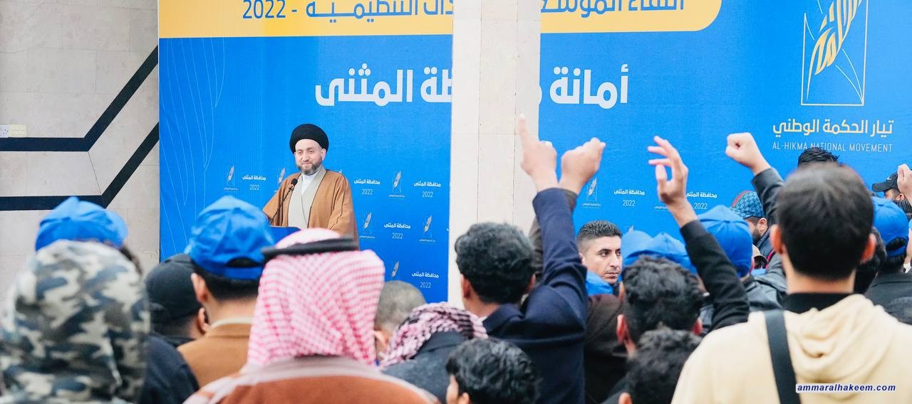في ختام جولته الى محافظة المثنى العزيزة 23/12/2022، التقى السيد عمار الحكيم رئيس تيار الحكمة الوطني جمعا من قيادات تيار الحكمة الوطني في المثنى، مشيدا بالجهود المبذولة في خدمة أبناء السماوة مطالبا اياهم بالمزيد، فيما شدد على إدامة التواصل مع الجمهور والاندكاك بالمشروع الوطني والدفاع عنه والتصدي للمشاريع الدخيلة التي تحاول النيل من التجربة العراقية واشاعة حالة اليأس والإحباط.