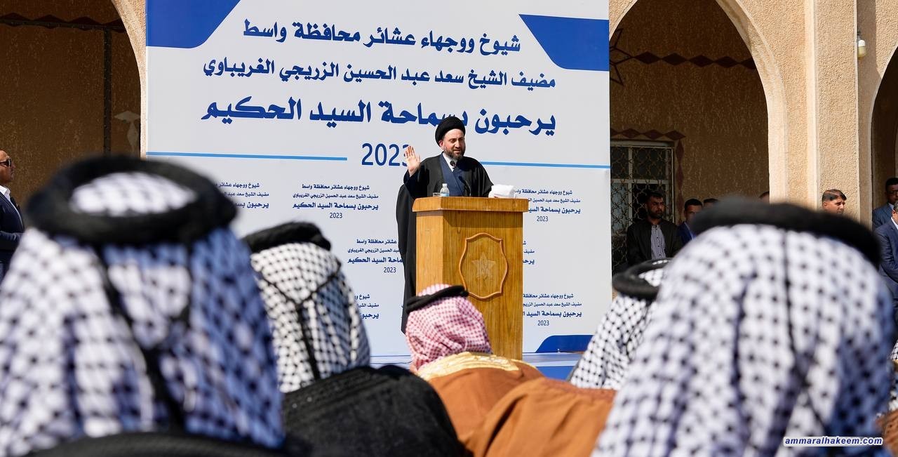 من محافظة واسط العزيزة ومن قضاء الحي التقى السيد عمار الحكيم رئيس تيار الحكمة الوطني في مضيف جناب الشيخ سعد عبد الحسين الزريجي الغريباوي جمعا كبيرا من السادة وشيوخ ووجهاء محافظة واسط 22/2/2023، مستذكرا التاريخ الذي جمعه معهم، مؤكدا أن العلاقة التي ورثناها من الأجداد والآباء سنورثها للأبناء والأحفاد