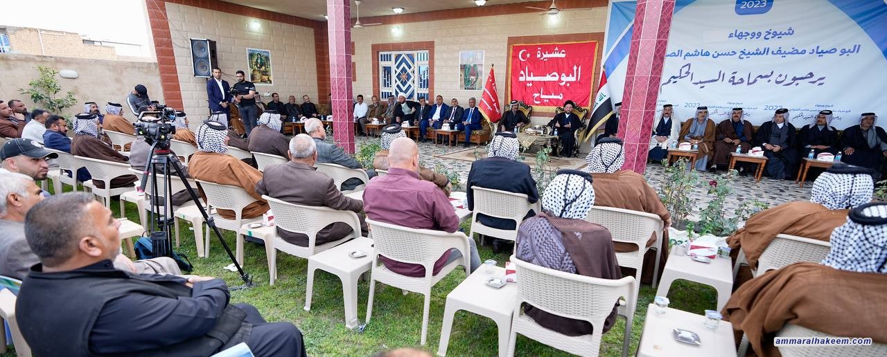 التقى السيد عمار الحكيم رئيس تيار الحكمة الوطني في مضيف الشيخ حسن هاشم الصيادي 22/2/2023، جمعا من شيوخ ووجهاء عشيرة البو صياد الكريمة مستذكرا التاريخ الطويل الذي جمعه معهم في محطات مهمة في مسيرة العراق الحديث.