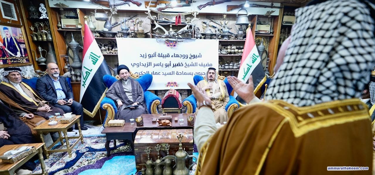 في مضيف عشائر البو زيد شرق بغداد وفي مضيف الشيخ خضير الزيداوي 22/3/2023، بارك السيد عمار الحكيم رئيس تيار الحكمة الوطني للحاضرين حلول شهر رمضان المبارك، مستذكرا التاريخ المشترك الذي جمعه معهم في محطات مفصلية من تاريخ العراق مؤكدا أن العراق حفظ في الثلاثية المتمثلة بالمرجعية الدينية و الشعائر الحسينية والعشائر العراقية، مبينا أن الكرم الذي ظهر في أكثر من مناسبة هو ثقافة حسينية.