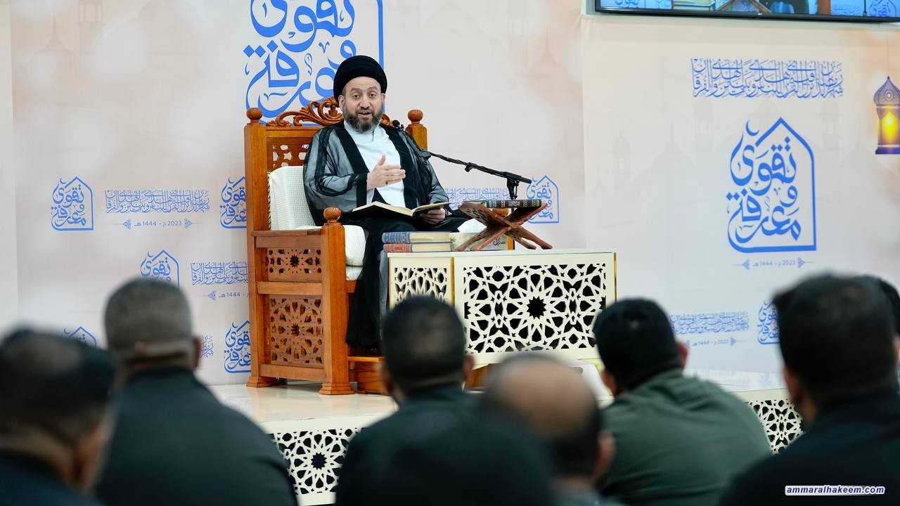 في المحاضرة الرمضانية الرابعة عشرة 13/4/2023، واصل السيد عمار الحكيم رئيس تيار الحكمة الوطني حديثه عن رسالة الحقوق لإمامنا زين العابدين علي بن الحسين "عليه السلام" واستكمل الحديث عن الحق السابع وهو حق اليد، حيث فصل في المعنى الحقيقي لليد ومصاديقه ، والمعنى المجازي لليد ومصاديقه أيضا، و انتهى إلى المعنى الكنائي لليد حيث تطلق اليد ولا يراد منها اليد بل معنى آخر مثل السخاء والبخل ( اليد المبسوطة واليد المغلولة)، مبينا أن السخاء أن تنفق الأموال فيما هو حق، وأن يكون من مال حلال فلا سخاء أو كرم مع مال حرام، وأن السخي هو من ينفق في السراء والضراء وأن يعطي السائل والمتعفف عن السؤال، مؤكدا أن الكريم يجب أن يكون سخيا في ماله لا في أموال الآخرين.