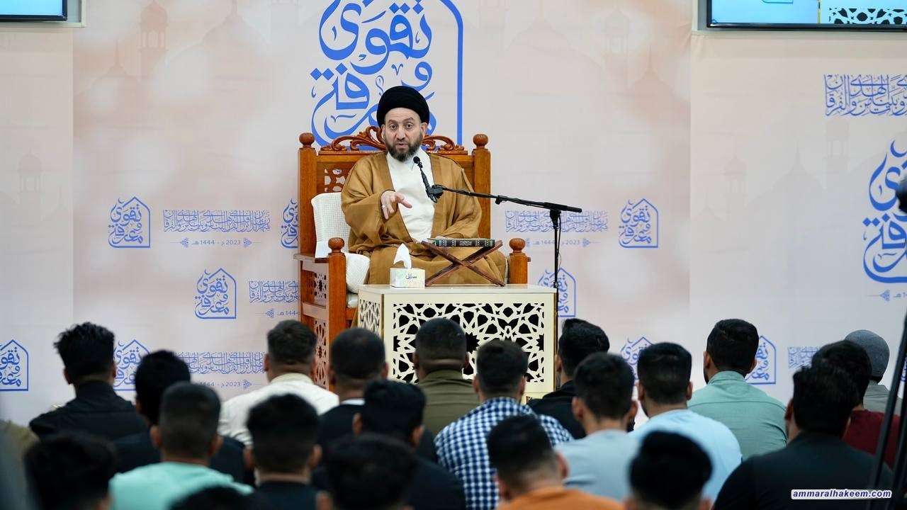 سماحته اشار الى رؤية الانسان الصالح للقوة على انها عجز في حد ذاته اذا ماقرنت بقوة الله وعلمه مبينا ان القوة اذا تحولت الى تكبر صارت وبالا على صاحبها وفصل القوة الصالحة التي تخدم المشروع الالهي كالايمان بان القوة الحقيقية لله سبحانه وتعالى وان كل الامكانات هي وسيلة للوصول الى الكمال وان لا تكون سببا في التعدي على الاخرين وان تكون محاطة برعاية الله وان تكون سبب لتواضع الانسان