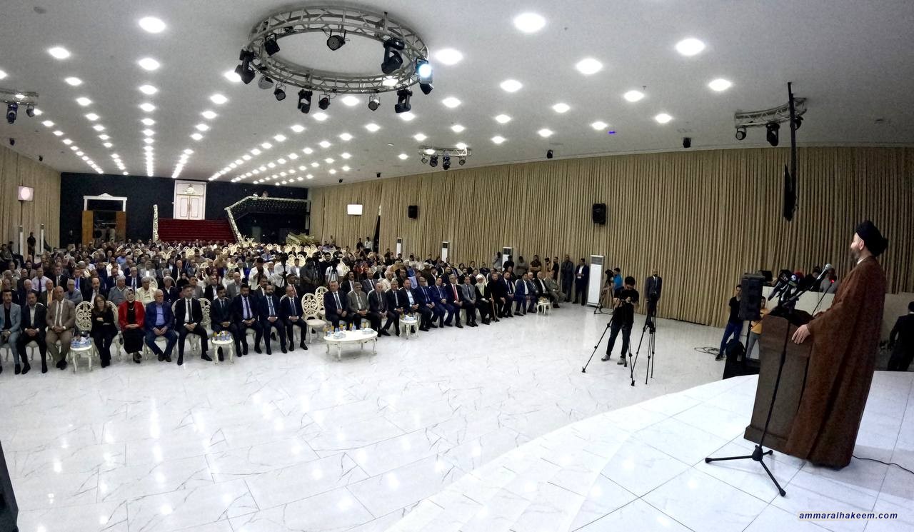 السيد الحكيم أشار إلى أهمية مواجهة التحدي الاقتصادي عبر رؤى واضحة ومشاريع واقعية وفريق إداري كفوء، كما أكد على مكافحة الفساد والاستعداد للانتخابات القادمة والتنافس على أساس البرامج.