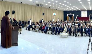 سماحته دعا الإخوة التركمان إلى توحيد الصفوف وتنسيق المواقف للحصول على تمثيل يتناسب مع مكانتهم وأدوارهم مشيدا بالتعايش المكوناتي في كركوك ومستشهدا بحضور المكونات في الفعاليات الاجتماعية والسياسية والدينية.
