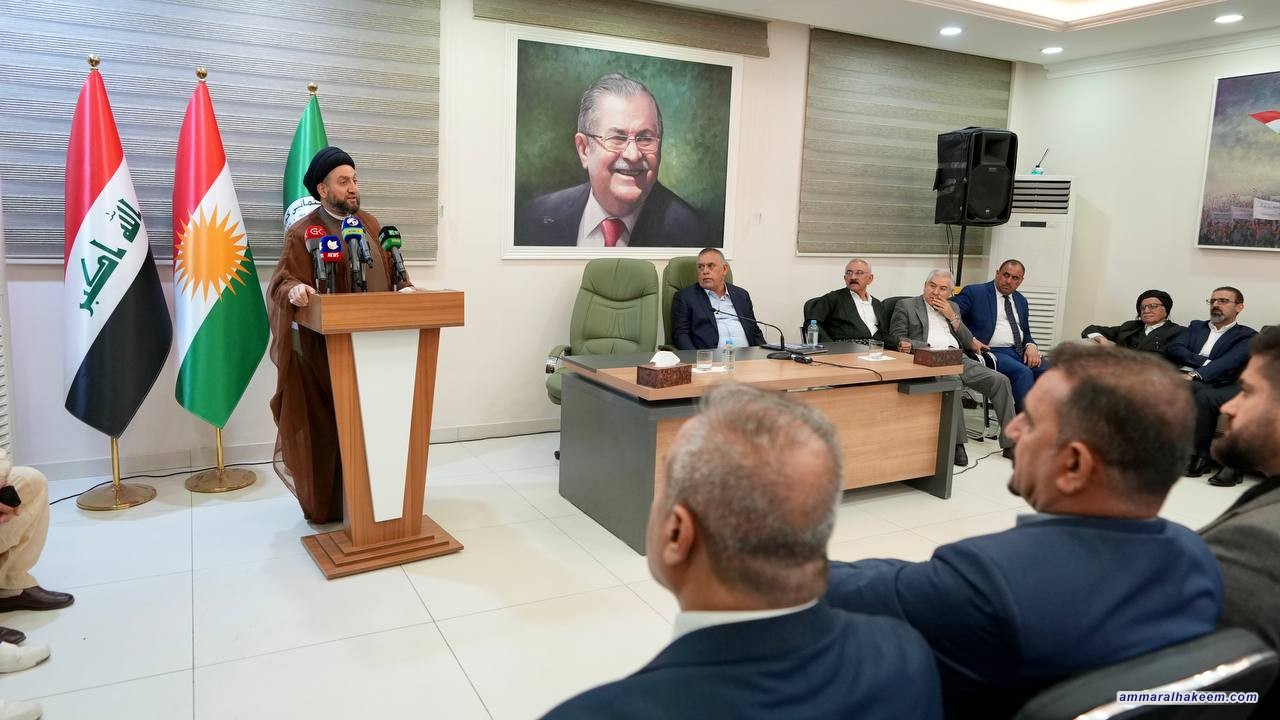 التقى السيد عمار الحكيم رئيس تيار الحكمة الوطني خلال زيارته إلى محافظة كركوك عدداً من الشخصيات و النخب و القيادات الكردية الكريمة في مقر الإتحاد الوطني الكردستاني، مستذكرا سيرة الراحل الكبير مام جلال طالباني رئيس الجمهورية الأسبق ومنهجه المعتدل ما جعله قريبا من الجميع حتى مثل رحيله خسارة للجميع.