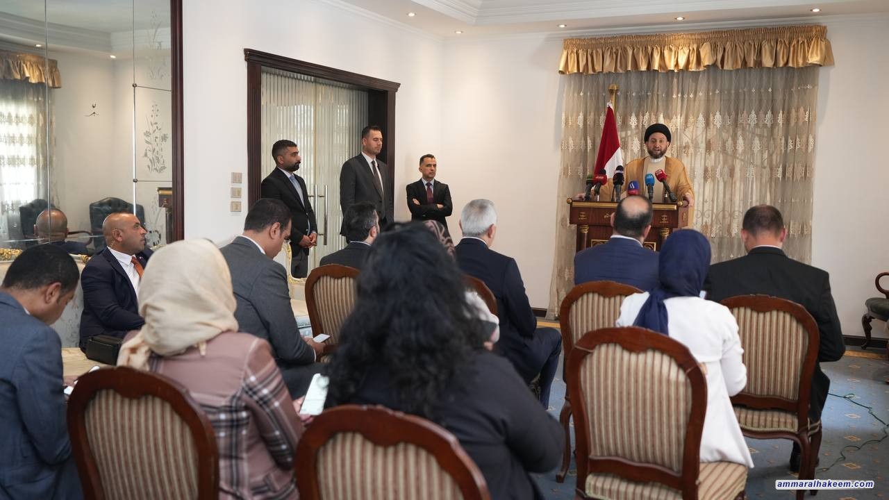 جاء ذلك خلال المؤتمر الصحفي الذي عقده سماحته في مقر السفارة العراقية بالقاهرة ،مجددا اعتزازه بالشقيقة مصر وأدوارها التاريخية ، مبينا أن العراق يعيش حالة استقرار غير مسبوقة أمنيا واقتصاديا واجتماعيا وسياسيا لما يمثله ائتلاف إدارة الدولة من حاضنة للحكومة الحالية، مشيرا الى أن هناك رغبة في الانفتاح على العراق وتطوير العلاقة معه ورغبة إقليمية ودولية لاستقراره .