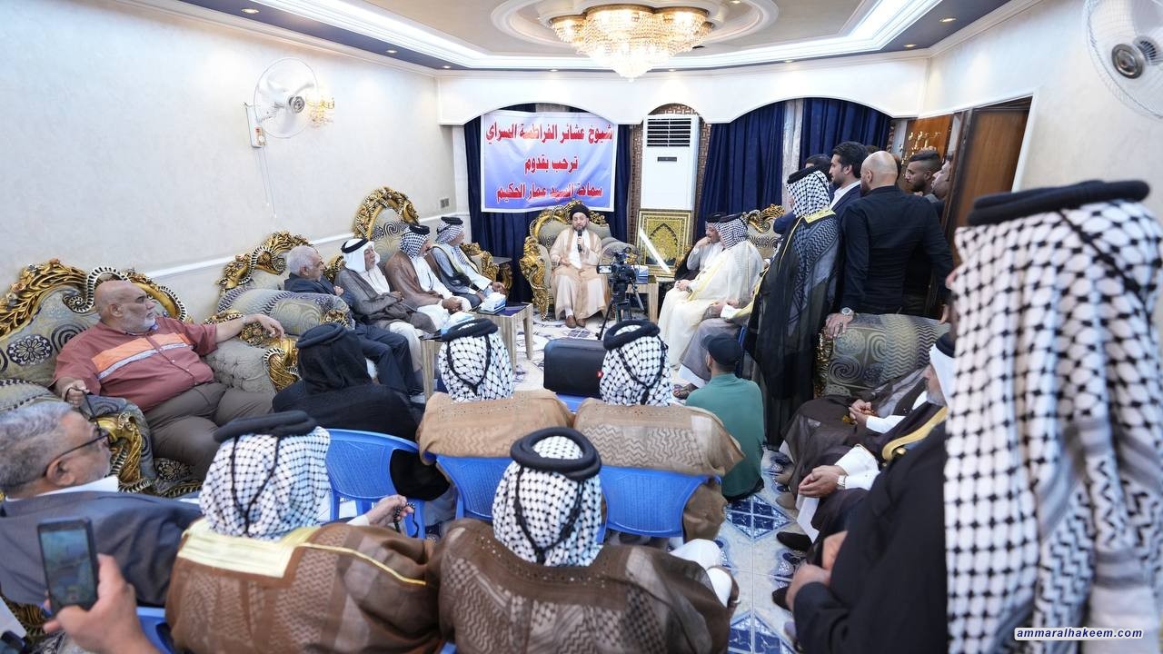 إلتقى رئيس تيار الحكمة الوطني السيد عمار الحكيم السبت 10/6/2023، جمعا من شيوخ ووجهاء عشيرة الفرطوس وحي الأمانة، في مضيف الشيخ حسيب فرحان الفرطوسي .
