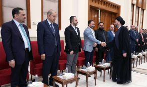 سماحته أكد أيضا أن العراق يعاني من مشاكل كبيرة لكن ما يميز هذه المرحلة وجود إرادة للحل وتركيز على نقاط القوة وتعزيزها واستثمارها، ومنها مكانته وموقعه وعمقه الحضاري، كما دعا للانفتاح على الحكومة الإتحادية والحكومات المحلية والقطاع الخاص ورجال الأعمال العراقيين .