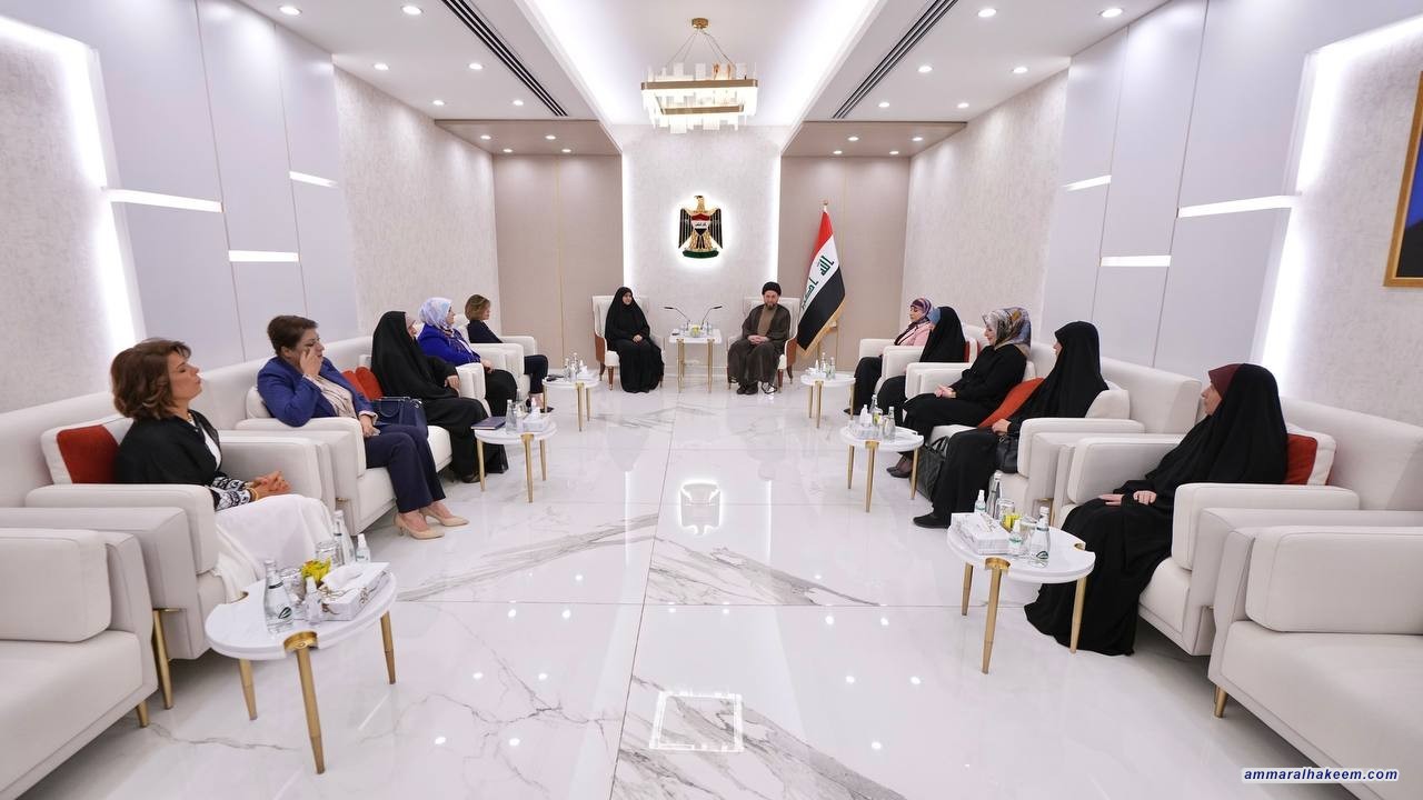 خلال لقائه وفدا من القيادات النسوية في السلطتين التنفيذية والتشريعية بحضور وزير الاتصالات السيدة هيام الياسري و وزير الهجرة والمهجرين السيدة إيڤان فائق جابر4/7/2023، تداول السيد عمار الحكيم رئيس تيار الحكمة الوطني مع الحاضرات في تطورات المشهد السياسي واستمع إلى رؤى القيادات النسوية بخصوص تمكين المرأة من تبوء مواقع قيادية في عموم المفاصل، داعيا إلى حضور نسوة العراق في الفعاليات الدولية والسياسية.