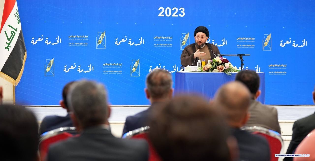 سماحته دعا للاعتزاز بمشروع الحكمة الوطني مشروع الاعتدال والوسطية، مؤكدا أن الحكمة تنفتح على الجميع ولديها مقبولية من الجميع.