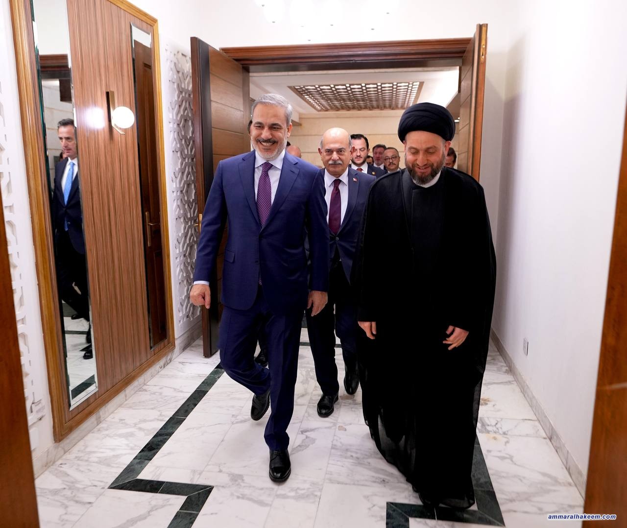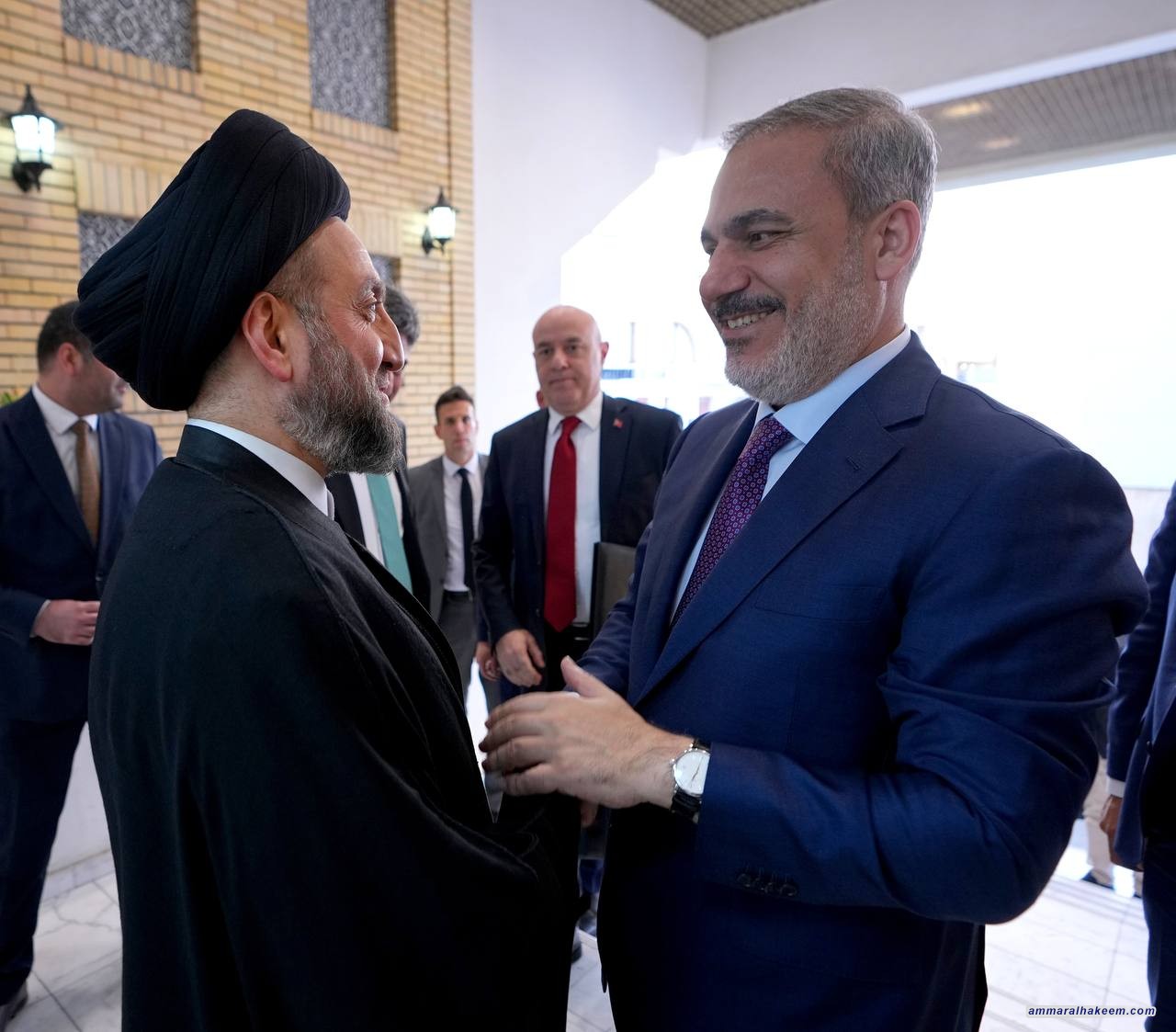 استقبل السيد عمار الحكيم رئيس تيار الحكمة الوطني 23/8/2023، وزير الخارجية التركي السيد هاكان فيدان، فيما بين أن زيارة معاليه تمثل رسالة مهمة لتعميق العلاقة بين العراق وتركيا، وأعرب عن رغبة العراق لتحويل علاقة الجوار والصداقة مع تركيا إلى شراكة سياسية اقتصادية ، إنطلاقا من العلاقة التاريخية للعراق مع الجارة تركيا، كما أوضح سماحته اعتزاز العراق بمكوناته وتنوعه لاسيما المكون التركماني الكريم، عادا التركمان جسرا عراقيا ثقافيا و قوميا باتجاه تركيا.