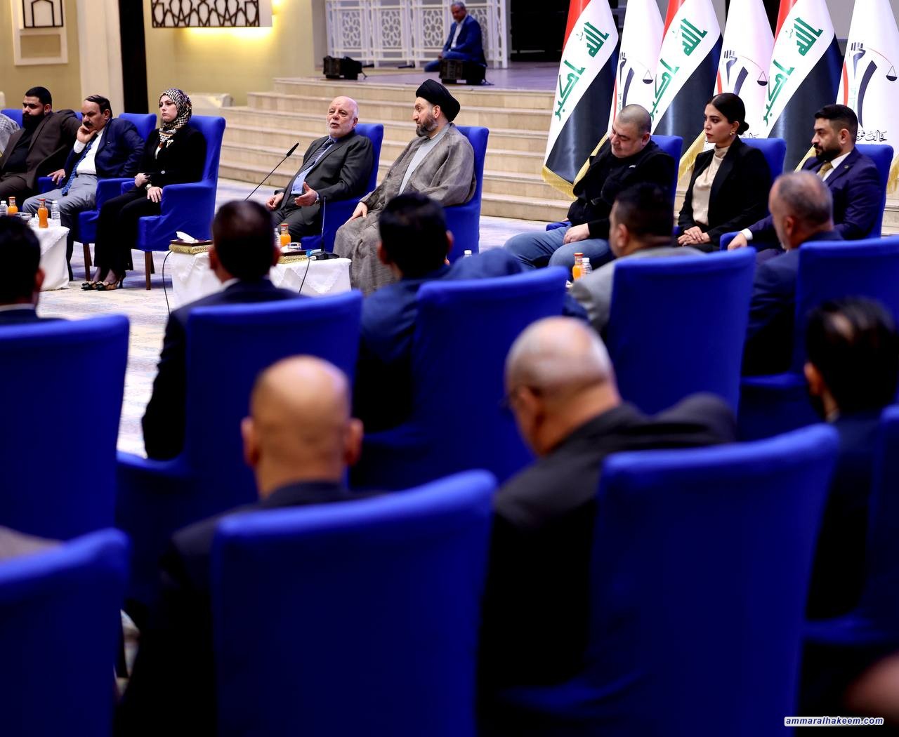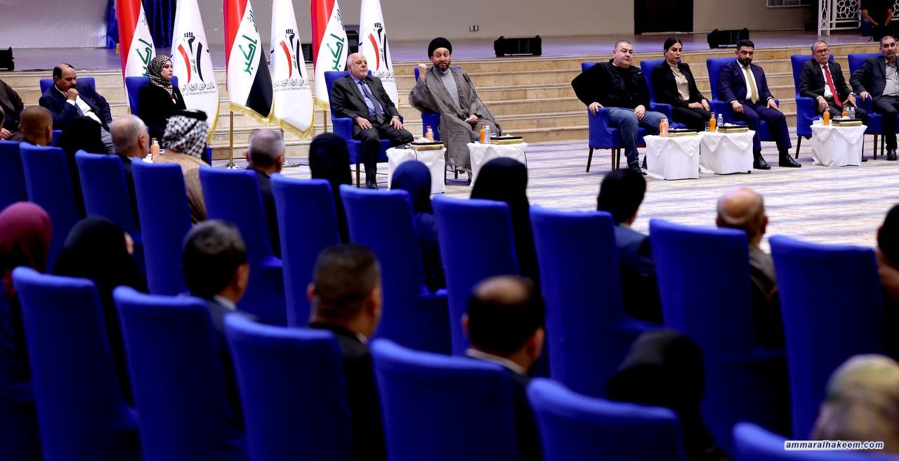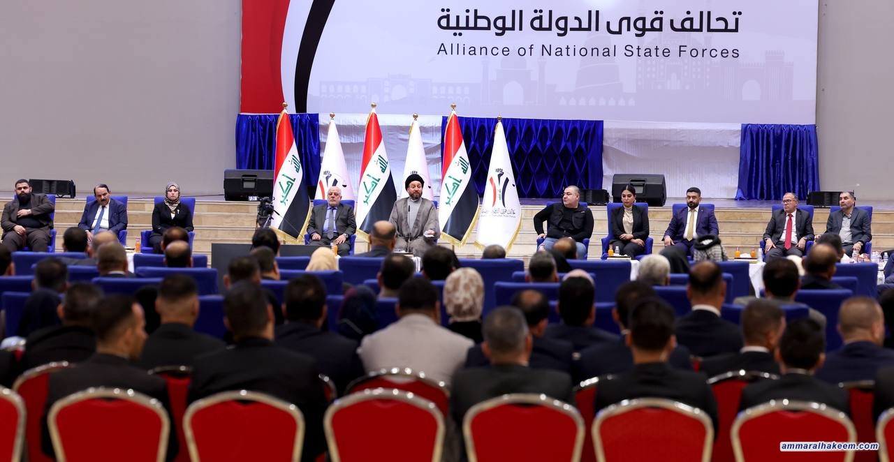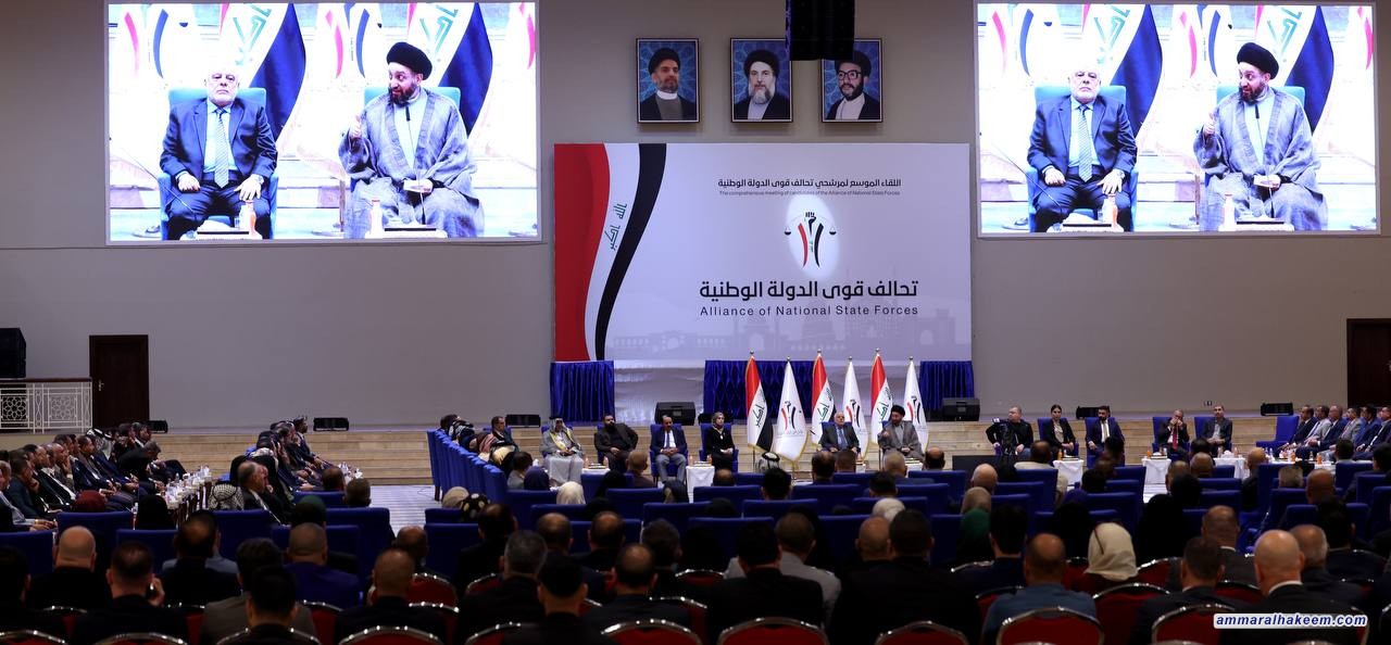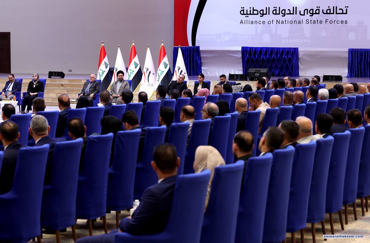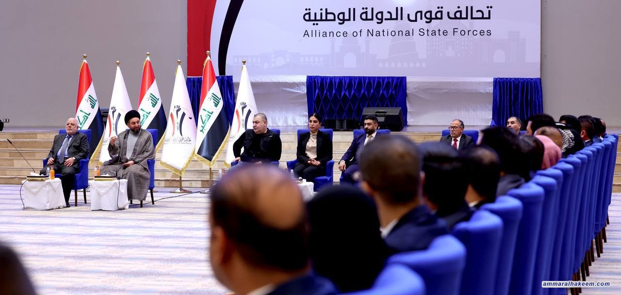 في اللقاء الموسع مع مرشحي تحالف قوى الدولة الوطنية بحضور دولة الدكتور حيدر العبادي رئيس المجلس القيادي للتحالف و رؤساء الكيانات المتحالفة و ممثليهم 16/9/2023، بيّن السيد عمار الحكيم رئيس تيار الحكمة الوطني أن تحالف قوى الدولة الوطنية يمثل محور الاعتدال والوسطية في النظام السياسي بشهادة الجميع مؤكدا أن تعدد القوائم الانتخابية و التحالفات السياسية أسهم في فرز المناهج، مشددا على أهمية منهجية التحالف في تقوية الدولة ومؤسساتها باعتبارها حاجة اجتماعية في هذه المرحلة.