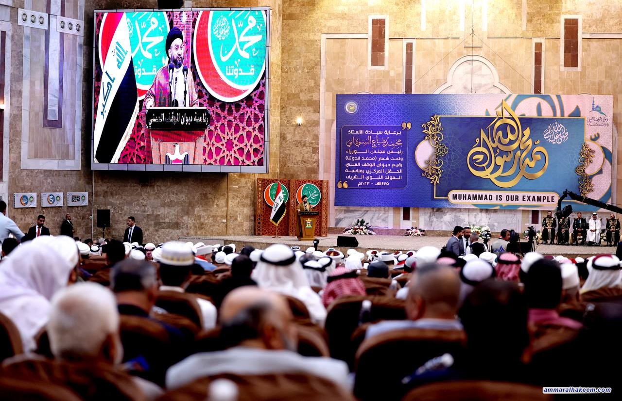 وقال في معرض كلامه "رسولنا الكريم ملتقى وحدة المسلمين، وإذا أردنا الوحدة بين المسلمين فعلينا أن نلتقي ونتمحور حول شخصية رسول الله "صلى الله عليه وآله وسلم"، وأن الإصلاح الحقيقي لايتم إلا باتباع منهجه القويم، ومدخله الأخلاق، فالأخلاق تمثل المفتاح الحقيقي للإصلاح، ولذلك جاءت الدعوة الإسلامية بمضمون أخلاقي" مبينا إن سياسة الاستهداف لشخص النبي (صلى الله عليه وأله وسلم) ورسالته ما زالت مستمرة ومتجددة، ومنها حرق القرآن الكريم تحت يافطة الحرية، وانتهاك حرمة رسول الله في صور مسيئة وازدراء عقيدة المسلمين وغيرها كلها إشارات لهذا المنهج المتواصل والمتجدد.