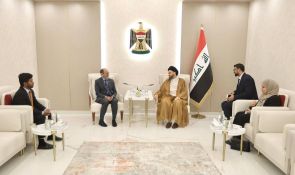 سماحته أكد أن العراق منفتح على الجميع بما يضمن سيادته ويحقق مصالحه، كما حمل الدول العربية والإسلامية مسؤولية الدفاع عن شعب فلسطين وتخفيف معاناته جراء الاعتداء الذي يتعرض له من الآلة العسكرية الإسرائيلية.