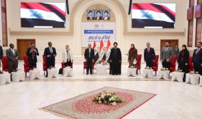 سماحته أشار إلى محورية العراق النابعة من تاريخه وحضارته وأدواره وموقعه الجغرافي وسط لاعبي المنطقة الكبار، مؤكدا أن العراق عاش تحولات كبيرة من مرحلة الدكتاتورية إلى سقوطها وقيام النظام الديمقراطي، موضحا أن التجربة الديمقراطية العراقية عانت من سوء الفهم ما جعلها مثار جدل عربي وإسلامي ومحط شيطنة وقلب للحقائق وتهويل للسلبيات وغض الطرف عن ما تحقق من إيجابيات ومنها التبادل السلمي للسلطة.
