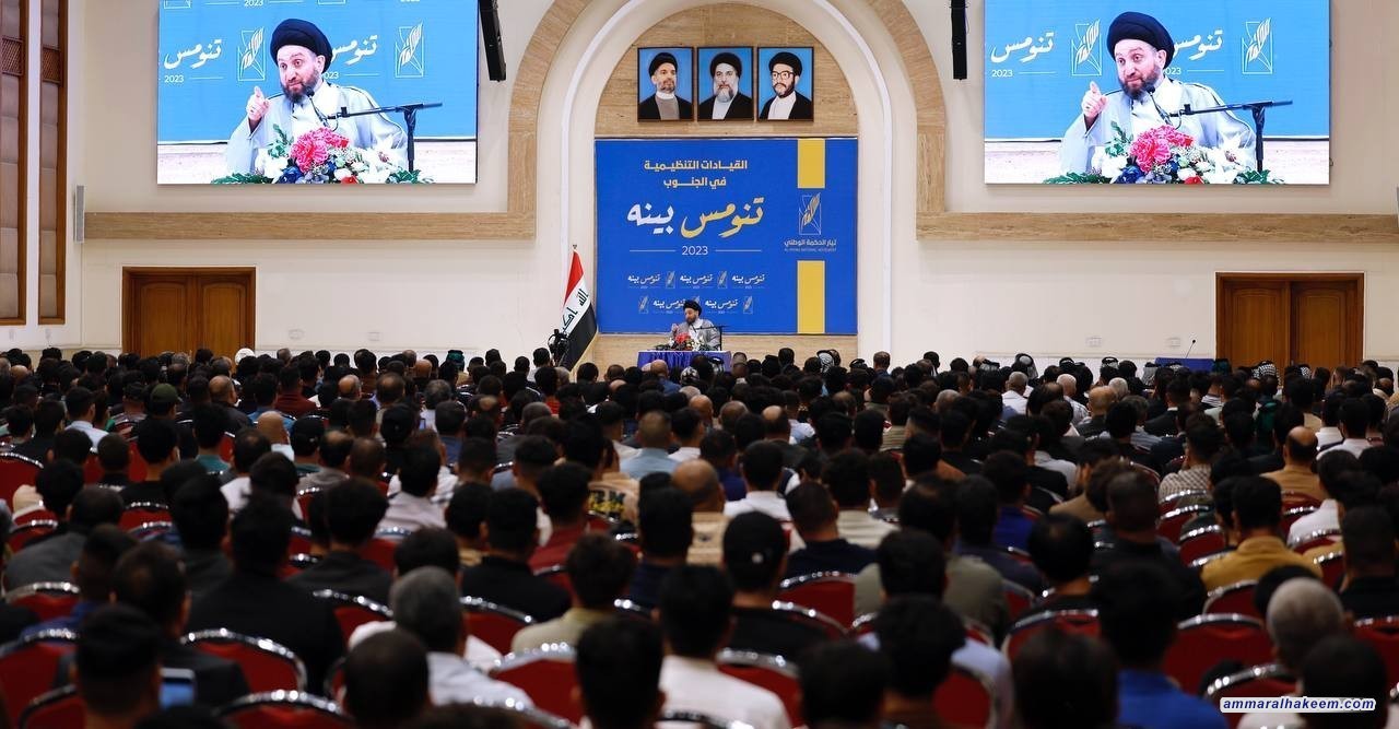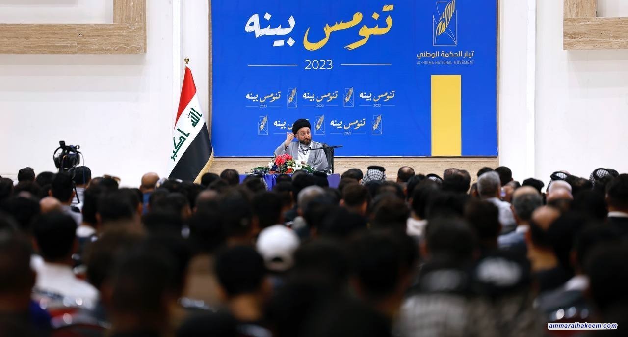 سماحته دعا أبناء تيار الحكمة الوطني إلى الاعتزاز بمشروعهم الوطني وتعريف الجمهور به، والاعتزاز بالتاريخ الحافل الممتد لمئة عام، مبينا أن تيار الحكمة يبحث عن المنفعة العامة ويسعى للتأثير الإيجابي في الأمة كما دعا لتأكيد منهج الاعتدال والوسطية، مبينا أنه منهج أصيل ومتجذر وبات سمة لازمة يشهد بها الأصدقاء والمنافسون، سماحته اكد أن إبعاد قوى الاعتدال والوسطية كان مخططا لإرباك المشهد السياسي وتغييب المعادلة الجامعة مشيرا إلى أن حضور تيار الحكمة الوطني ملازم لحضور النجاح والاستقرار واستشهد ببعض المحطات التاريخية التي حضر فيها تيار الحكمة فتحقق خلالها الاستقرار والنجاح بخلاف التي غاب عنها فقد اختلت الأوضاع فيها.