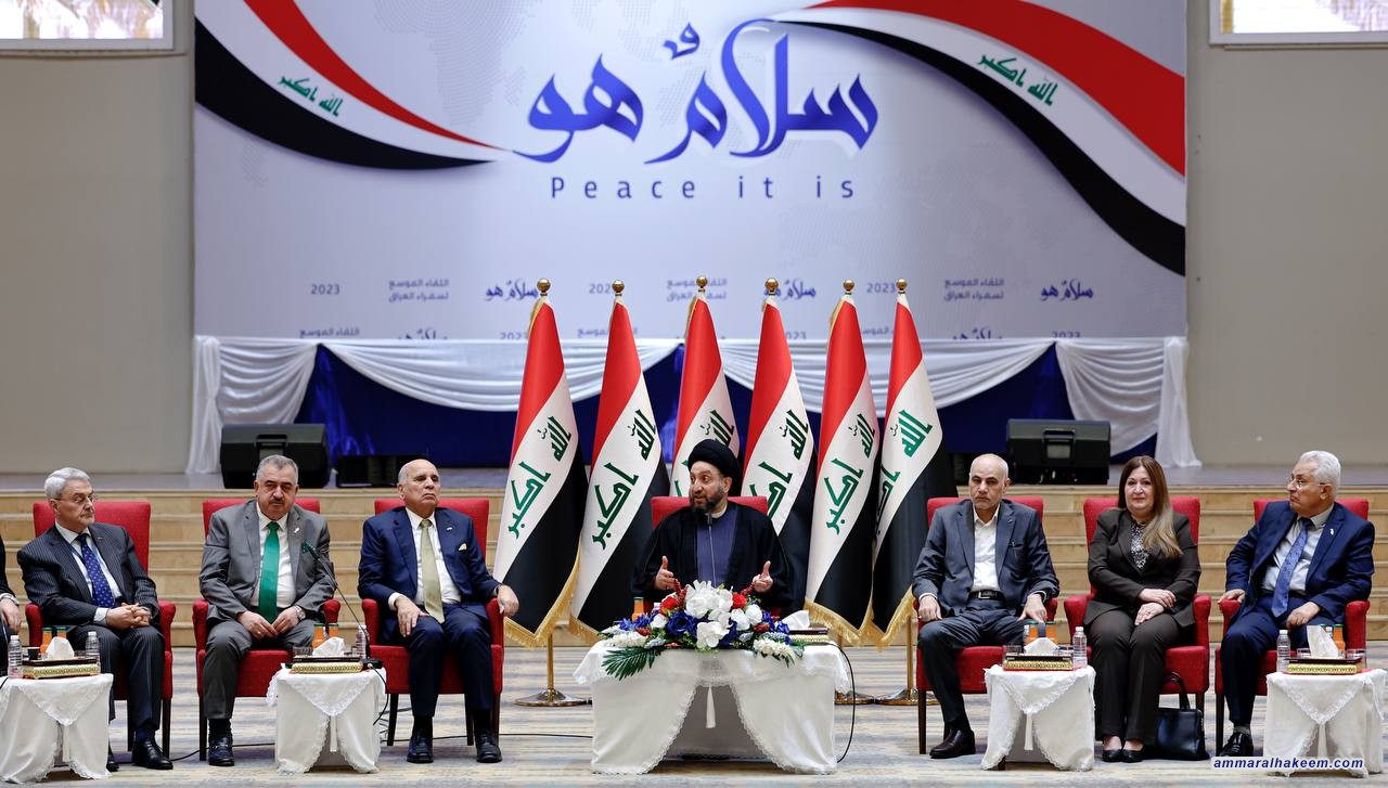 فيما أشاد سماحته بموقف العراق السباق في دعم القضية الفلسطينية مرجعيا وحكوميا ودبلوماسيا وشعبيا و إعلاميا، وشددنا على أن قرار السلم والحرب من صلاحيات مجلس النواب العراقي وهي صلاحية حصرية نص عليها الدستور وكفلها للمؤسسة التشريعية، داعيا إلى النظر لبعض التحولات في أفريقيا والانفتاح عليها، حيث إن أفريقيا وتمثيلنا الدبلوماسي فيها يدفعنا إلى ترتيب الأولويات من جديد، مبينا أن التحدي الحالي إقتصادي ومناخي حيث غادر العراق تحدي الأمن والسياسة، وأشرنا إلى أن الاستقرار السياسي يجلب الاستقرار الأمني والاجتماعي والفرص الاقتصادية الواعدة، وجددنا وصفنا لإئتلاف إدارة الدولة باعتباره ائتلافا حاكما عابرا للمكونات.