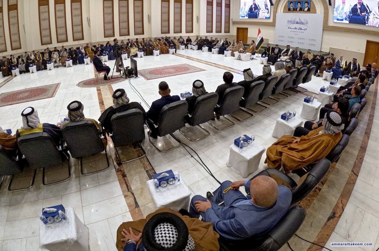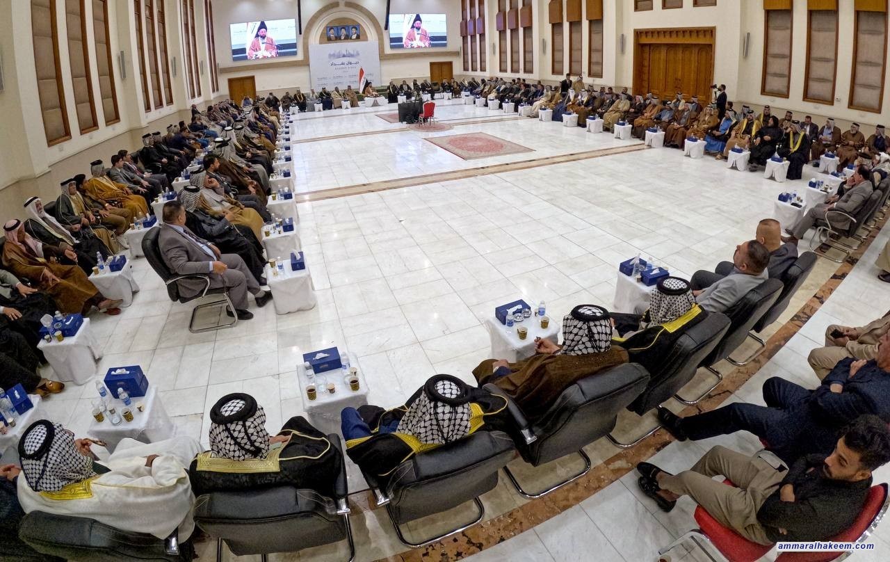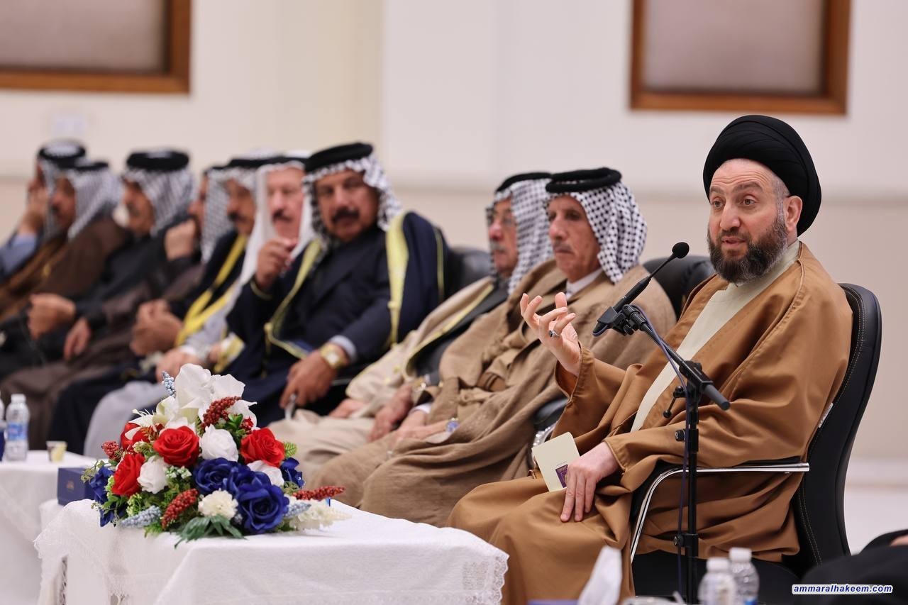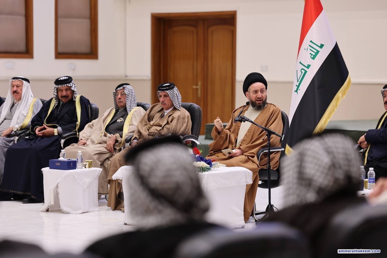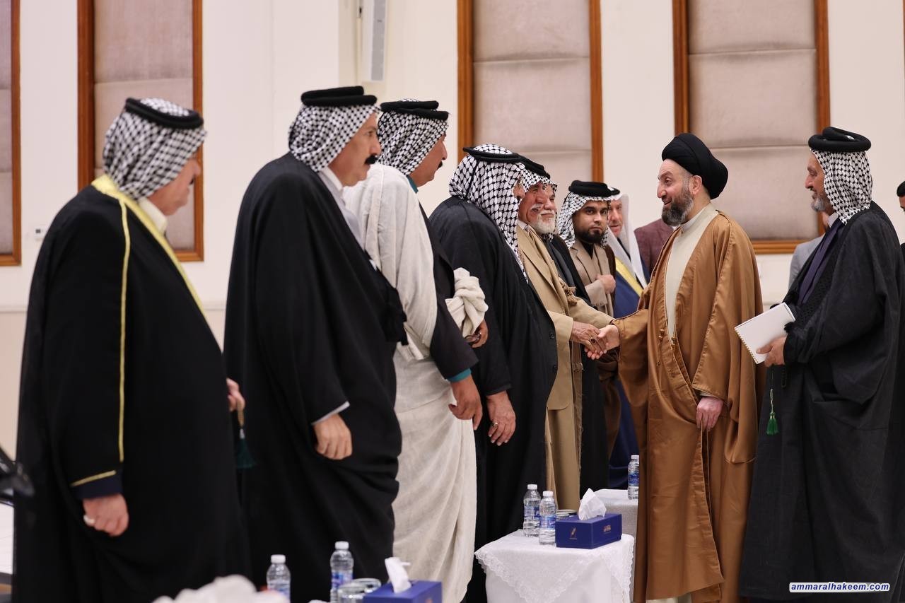 سماحته أكد أن العراق غادر تحديات صعبة بتضحيات أبنائه ووقفة العشائر العراقية واستجابتها لنداء المرجعية الدينية العليا. مشيرا إلى طبيعة الاستقرار الأمني والسياسي والاجتماعي ما أسفر عن حملة إعمار وخدمات.