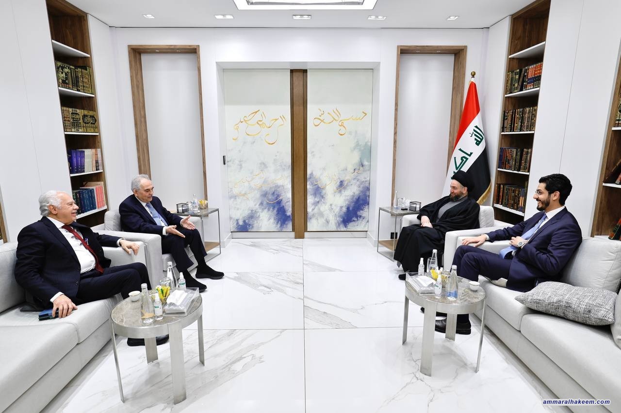 التقى السيد عمار الحكيم رئيس تيار الحكمة الوطني وفد مجموعة السلام برئاسة معالي السيد سمير الحباشنة وزير الداخلية الأردني الأسبق يرافقه الكاتب والمفكر الدكتور عبد الحسين شعبان، حيث أشار سماحته إلى تطورات الأحداث في العراق وطبيعة الاستقرار الحالي ومقوماته، مبينا أهمية العمل لتحقيق الاستقرار المستدام، مشددا على دور العراق في تقريب وجهات النظر بين فرقاء المنطقة.