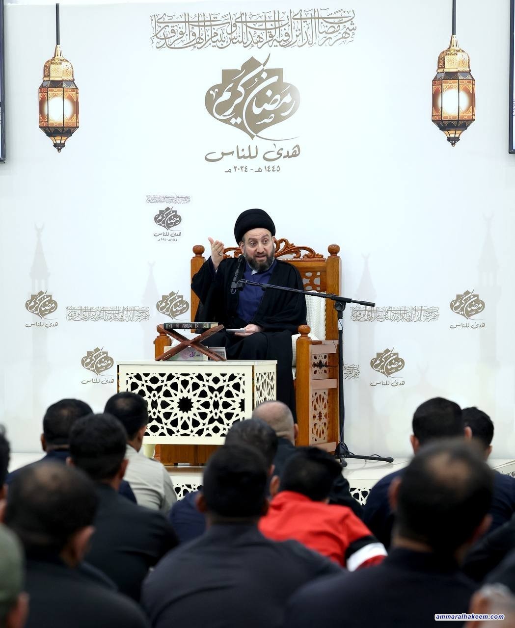 في المحاضرة الرمضانية الثانية واصل السيد عمار الحكيم رئيس تيار الحكمة الوطني 14/3/2024، الحديث عن حق البطن الذي يمثل الحق الثامن في رسالة الحقوق لسيدنا ومولانا زين العابدين علي بن الحسين ( عليه السلام) التي تمثل اختزالا للنظرية الاجتماعية لنظام الحقوق في الإسلام، وبعد أن عرف بالمعنى اللغوي للبطن وأجزائه استعرض إضاءات القرآن الكريم حول هذا الحق، وتحدث عن الطائفة الأولى والثانية من الآيات الكريمة المتعلقة بالموقف من الأطعمة والأشربة، وأنه نعمة من الله للإستقواء.