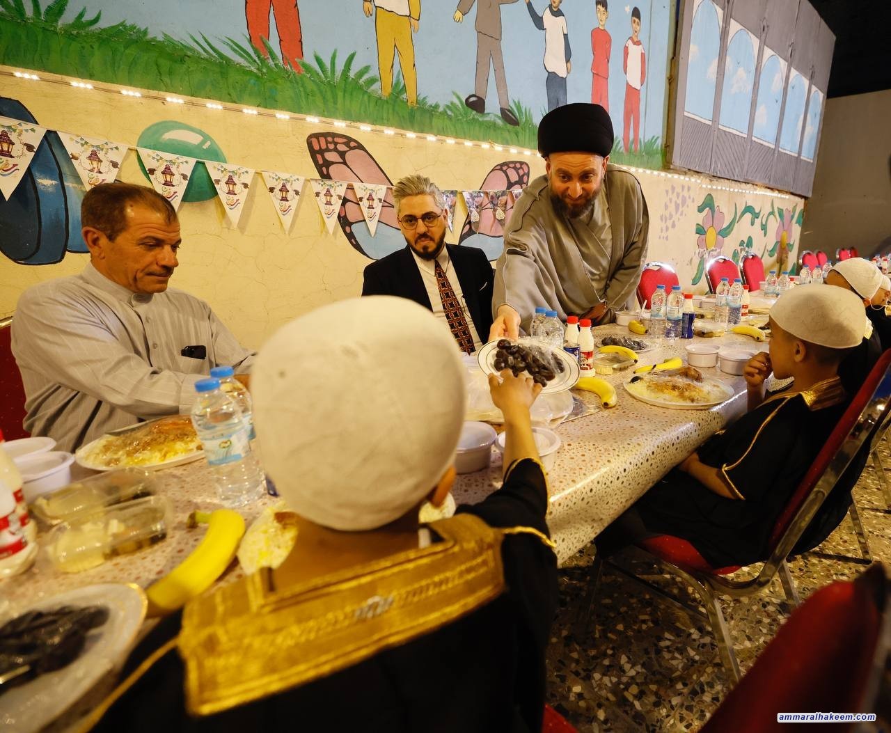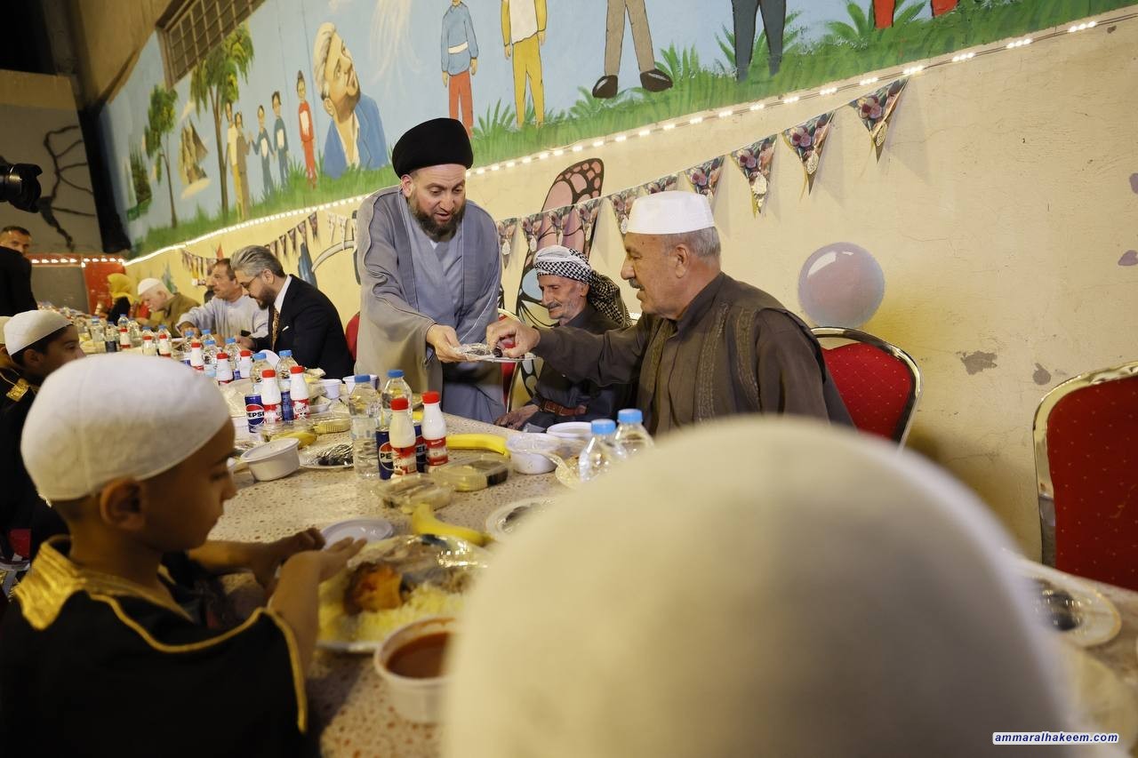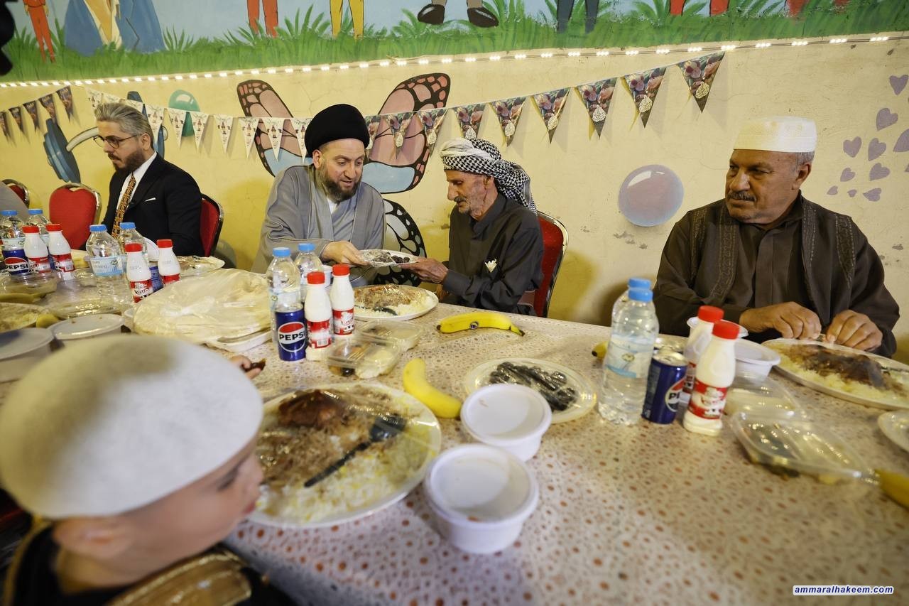 سماحته بيّن أن العراق مر بظروف صعبة إنعكست سلبا على الإعمار والبنى التحتية وأثرت أيضا على الإنسان وأفرزت بعض السلوكيات الشاذة. مضيفا بقوله لكبار السن "أنتم الخير والبركة ومشاركتنا إفطاركم تعبيرا منا على دعمكم".