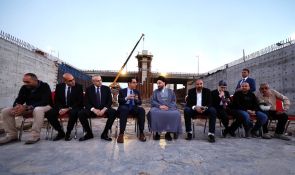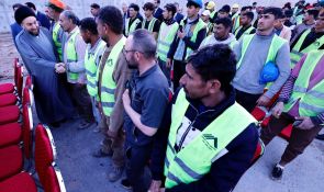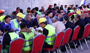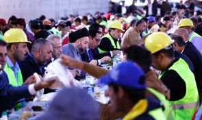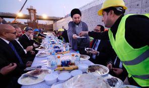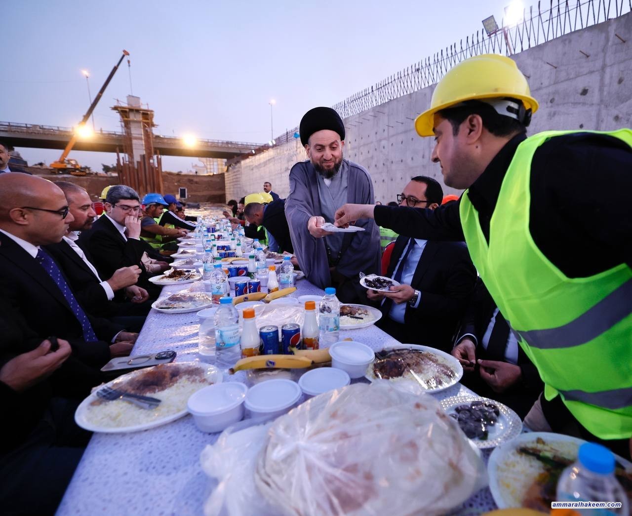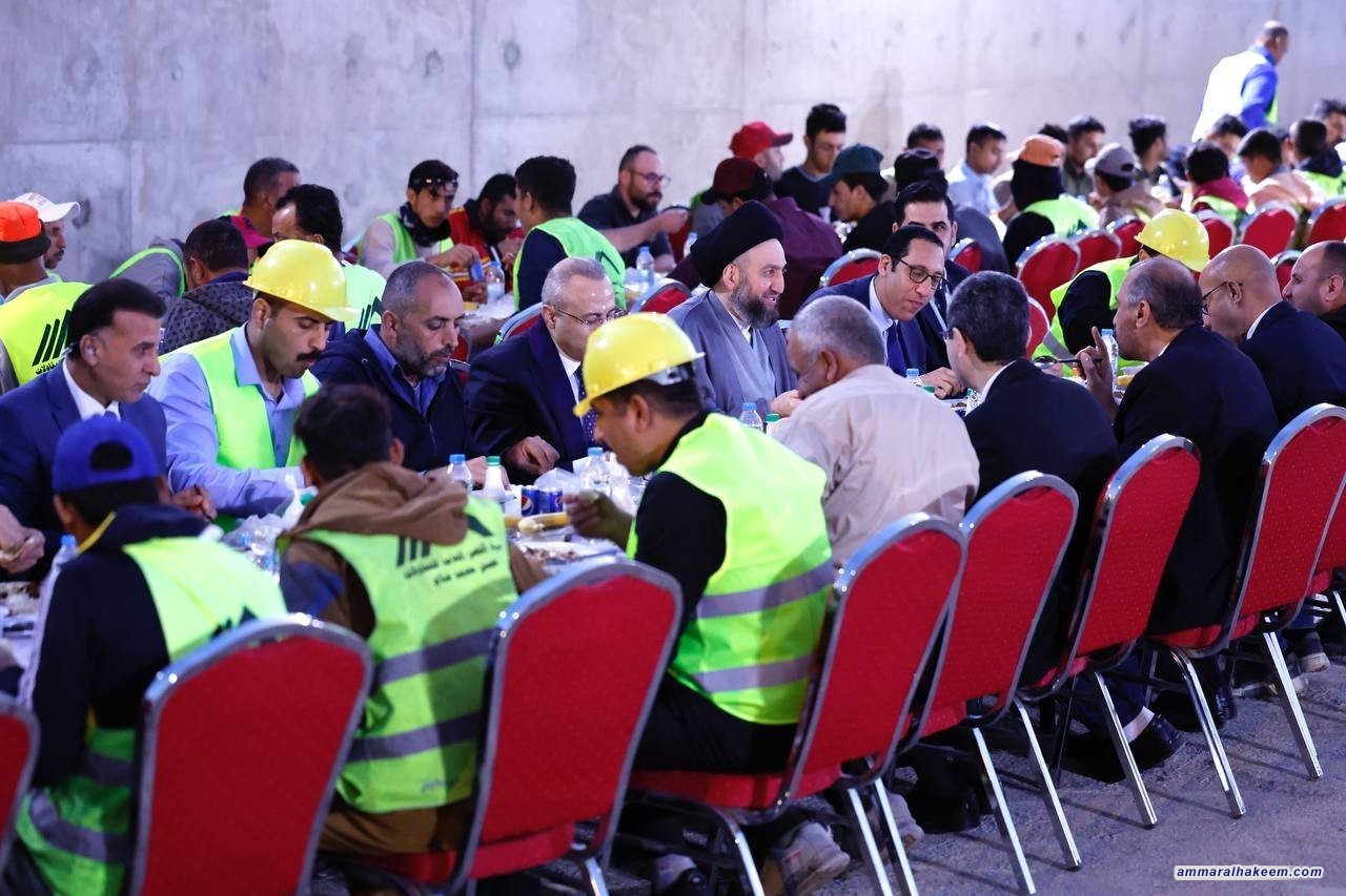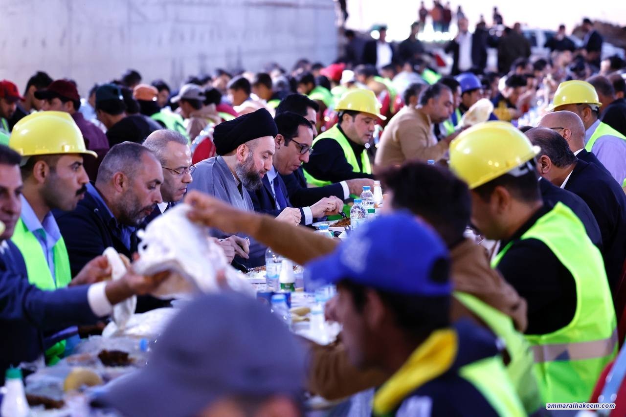 السيد الحكيم يتناول طعام الافطار مع مهندسي وعمال مجسر معسكر الرشيد مشيدا بحضور الشركات الاجنبية والعربية في العراق
