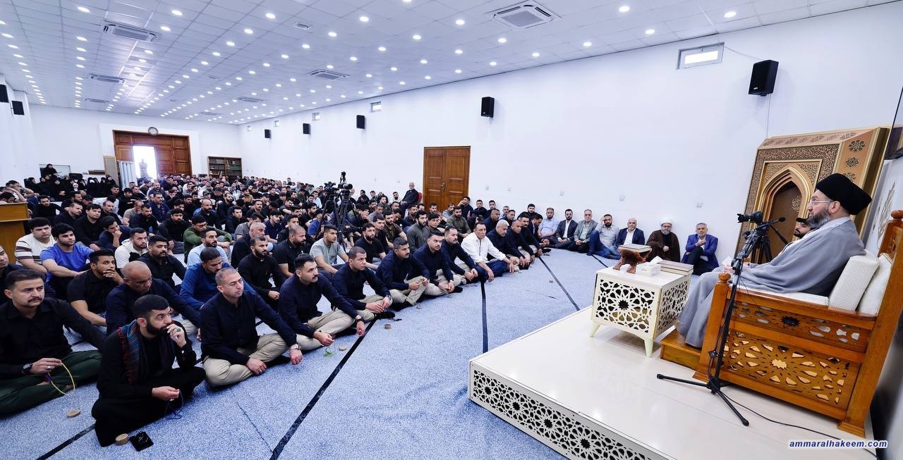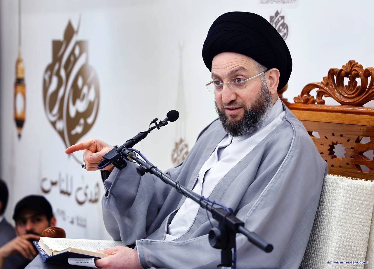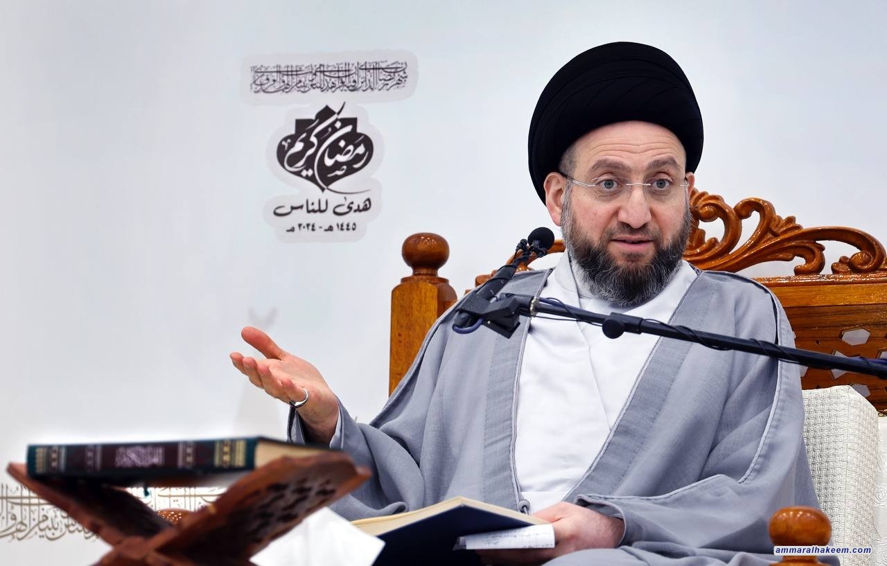 يواصل السيد عمار الحكيم رئيس تيار الحكمة الوطني محاضراته عن رسالة الحقوق لمولانا الامام زين العابدين علي بن الحسين عليهما السلام وقال سماحته "استكمالا للمحاضرة السابقة، والتي انتهينا فيها إلى الإضاءة التاسعة من الإضاءات المتعلقة بحق البطن وهو الحق الثامن من رسالة الحقوق لسيدنا ومولانا الإمام زين العابدين علي بن الحسين (عليه السلام)، وهذه الإضاءة تتحدث عن مصاديق الأطعمة" مستعرضا طائفة من الآيات الكريمة التي تورد ثمانية أنواع من الأطعمة مجتمعة، وذكر أيضا العديد من الروايات الواردة عن رسول الله (صلى الله عليه وآله وسلم ) وأهل البيت (عليهم السلام) في استحباب أكل العنب.