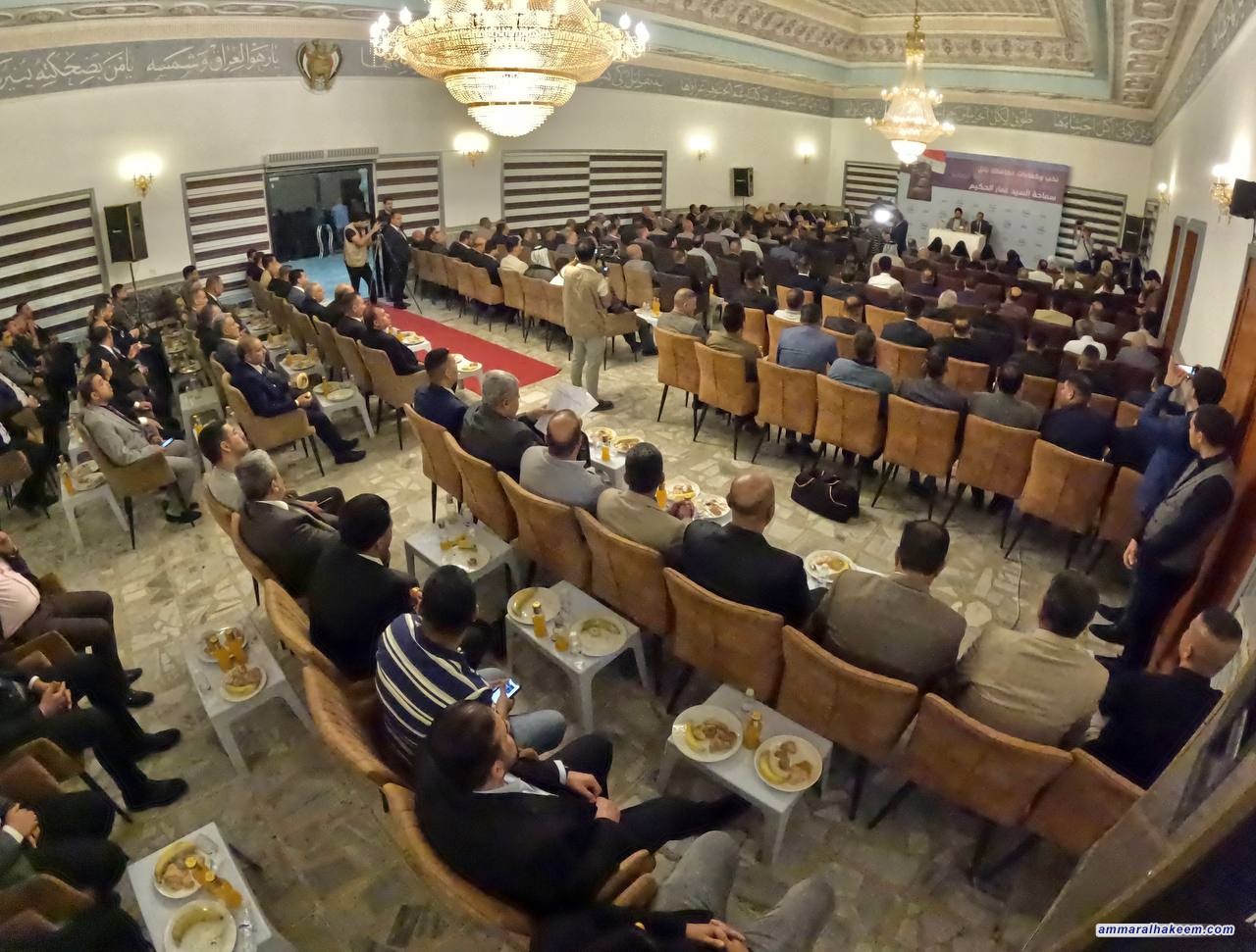 في لقائه مع نخب وكفاءات بابل2/5/2024، استعرض السيد عمار الحكيم رئيس تيار الحكمة الوطني المشهد السياسي العام وبعد الاستماع إلى مداخلاتهم القيمة، بين أهمية تطوير وسائل الري وتحقيق أعلى منفعة من المياه، داعيا أيضا إلى ثلاثية الأمن والمياه والاقتصاد في التعامل مع الجانب التركي، كما أعرب عن أمله بأن يسهم الاتفاق الأخير بحصول العراق على حصته العادلة بعد إصلاح المنظومة الإدارية للمياه.