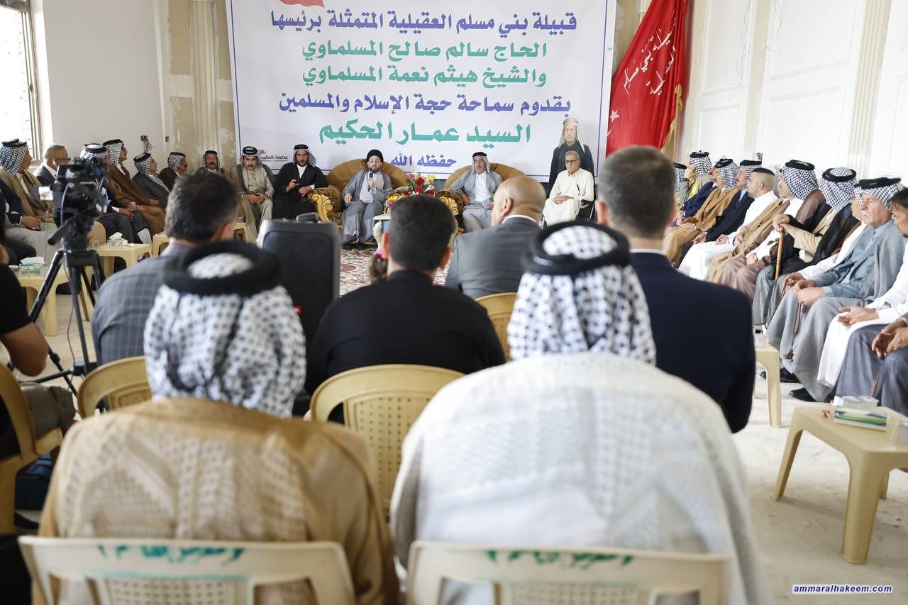 في مضيف قبيلة بني مسلم العقيلية وبحضور مهيب لأمراء وشيوخ القبائل في بابل وفي مضيف المرحوم الشيخ نعمة المسلماوي 3/5/2024، أكد السيد عمار الحكيم رئيس تيار الحكمة الوطني أن الغاية من الزيارة هي التواصل والوقوف عند هموم المواطنين واحتياجاتهم، مبينا أن بابل تحتاج جهدا مضاعفا لتواكب عملية التنمية في باقي المحافظات، معربا عن ثقته بالحكومة الجديدة في بابل للبدء بعملية التراكم الإيجابي،مؤكدا أن العراق أمام فرصة غير مسبوقة لاستثمار الوضع الأمني والسياسي فضلا عن البيئة الإقليمية والدولية الراغبة باستقرار العراق.
