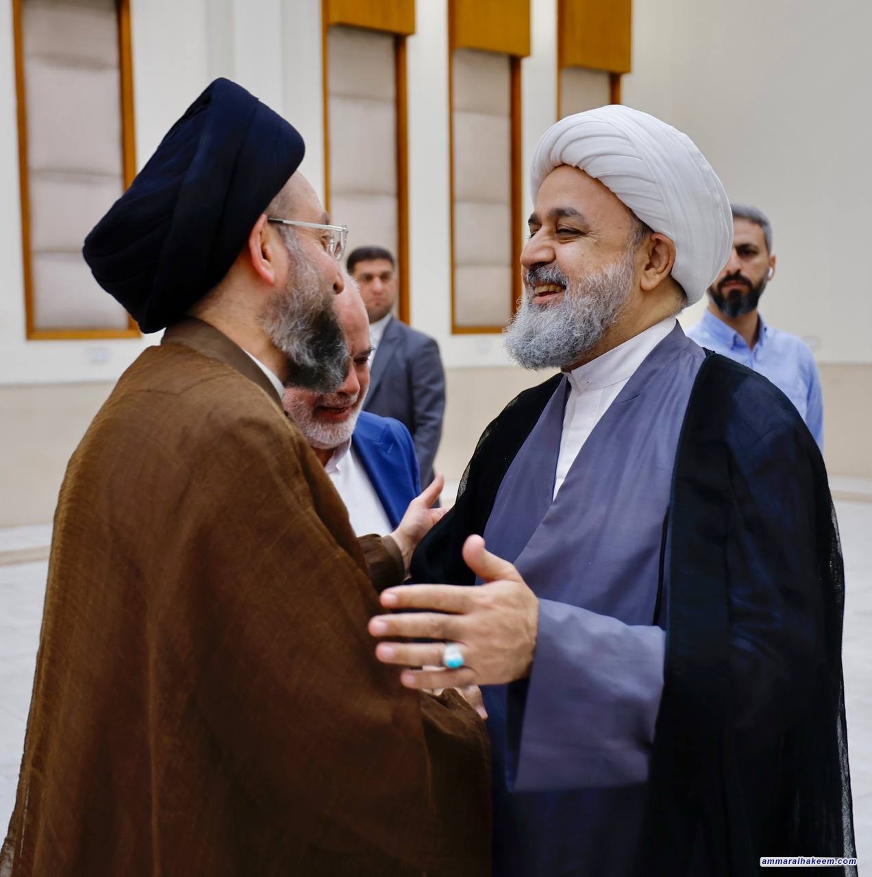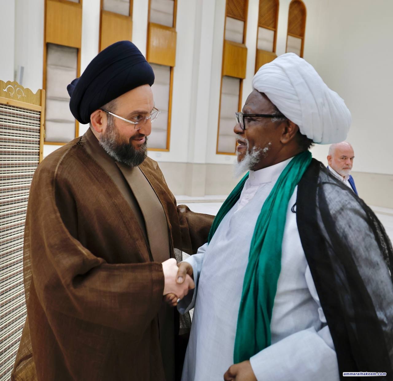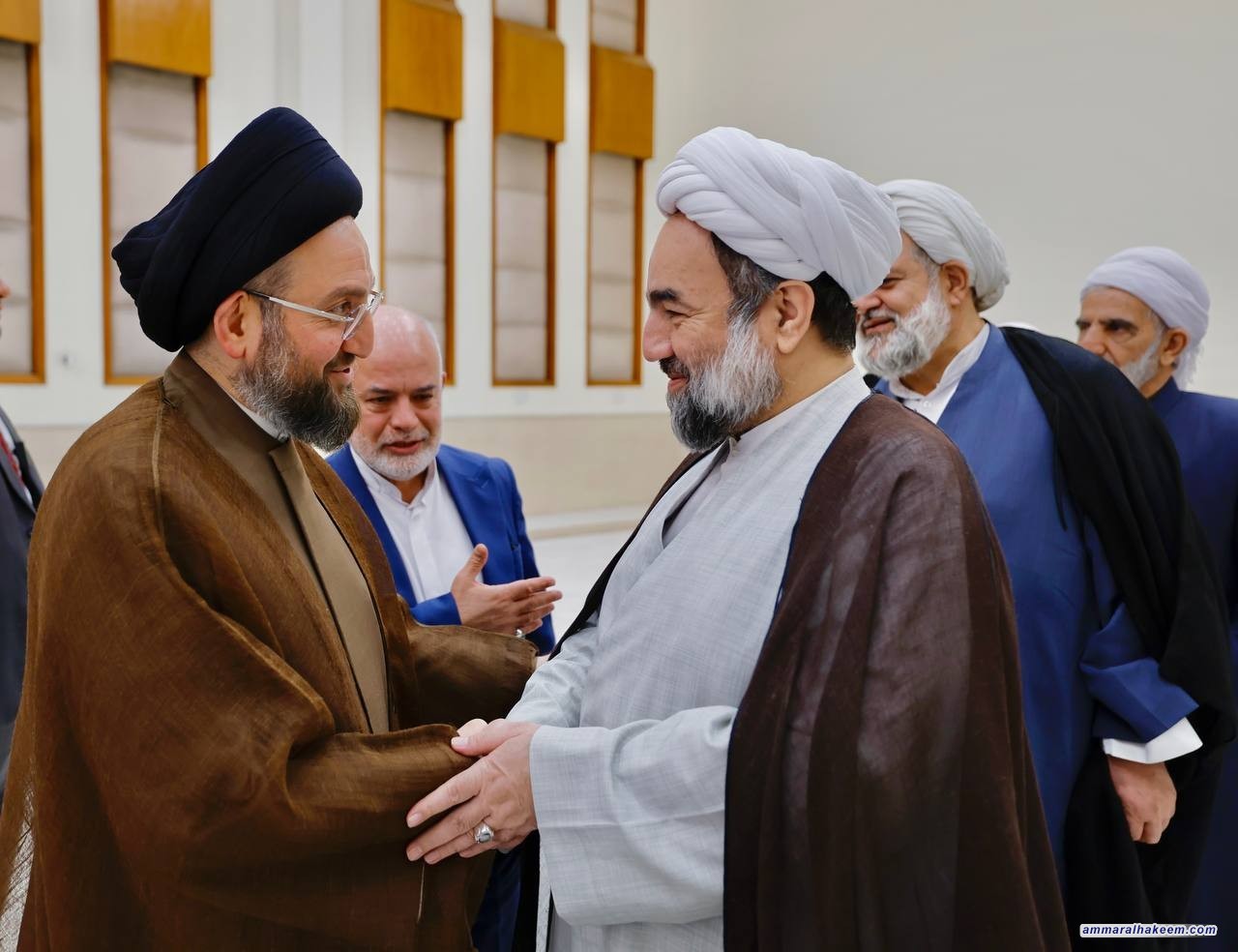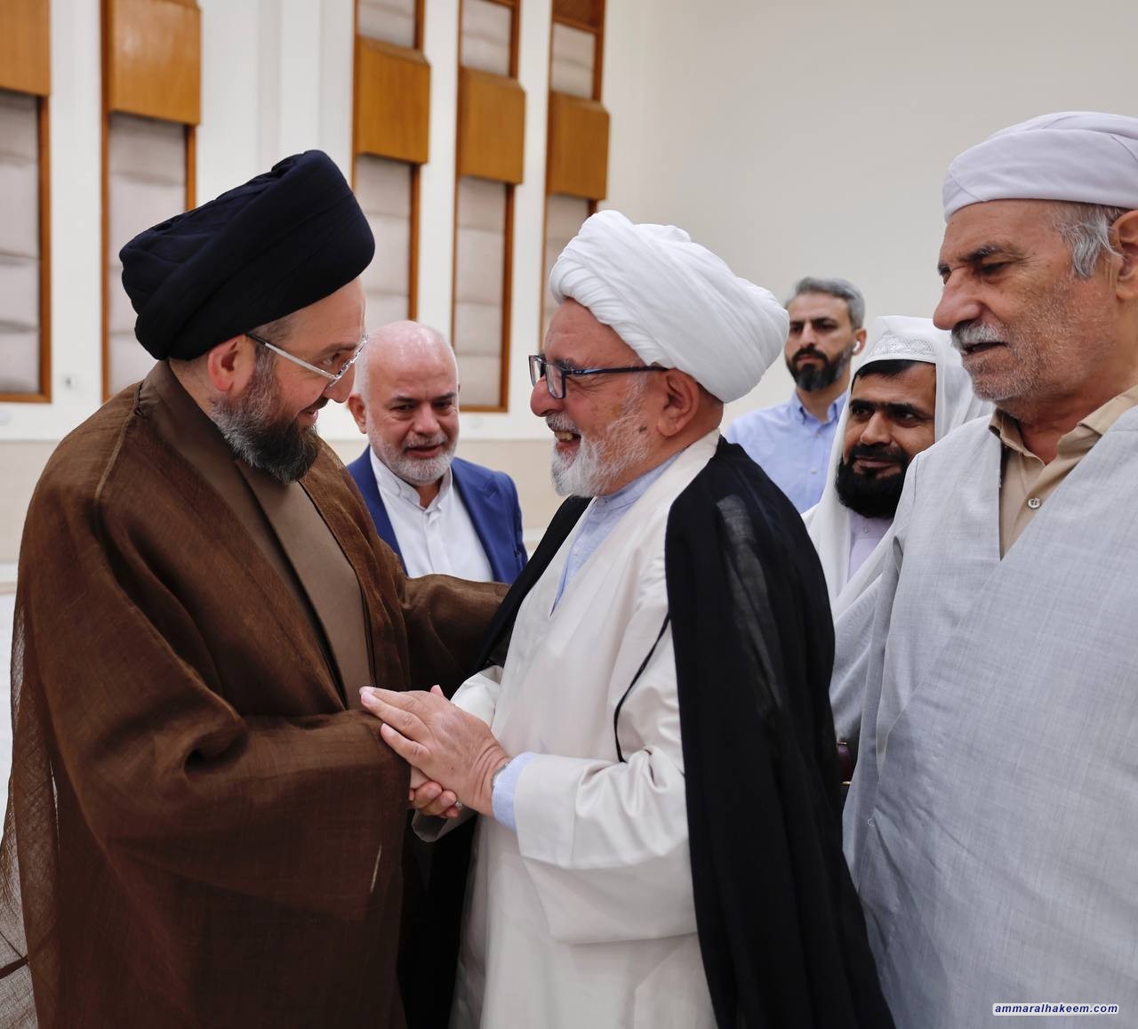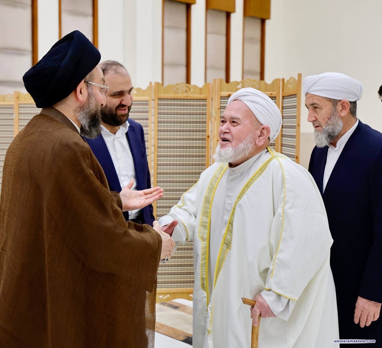 استقبل السيد عمار الحكيم رئيس تيار الحكمة الوطني الأمين العام للمجمع العالمي للتقريب بين المذاهب الإسلامية سماحة الشيخ الدكتور شهرياري وعددا من الشخصيات العلمائية أعضاء المجلس الأعلى للمجمع، مرحبا بالحاضرين في عراق أهل البيت وأئمة المسلمين (عليهم السلام)، مبينا أن العراق محور في التاريخ وفي الحركة الإصلاحية للإمام المهدي (عجل الله تعالى فرجه الشريف) متمنيا للمشاركين التوفيق في زيارتهم للعراق.