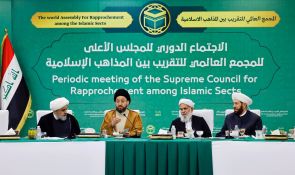 في الاجتماع الدوري للمجلس الأعلى للمجمع العالمي للتقريب بين المذاهب الإسلامية، وبعد ما تفضل به رئيس وأعضاء المجلس من كلمات ومداخلات قيّمة، قال السيد عمار الحكيم رئيس تيار الحكمة الوطني في كلمته "من الضرورة بمكان تعزيز عمل المجمع ودوره في التواصل والتقريب مع ضرورة التفريق بين التقريب وبين الاندماج فليس المطلوب هو الإندماج وتمييع العقيدة بل حالة التعاون والتكامل وتفهم عقيدة البعض للبعض الآخر" داعيا لاختيار شخصيات مؤثرة للهيأة العامة للمجمع، واعتماد منهجية واضحة للتقريب تأخذ بعين الاعتبار التحديات في كل منطقة.