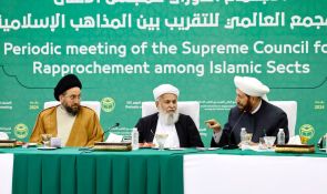 ضرورة الاهتمام بالجانب الأخلاقي والاجتماعي ومواجهة الغزو الثقافي للحضارة الإسلامية مشددا على حضور المرأة المسلمة في مجال التقريب بين المذاهب وأهمية آلية التواصل ما بين الأعضاء.