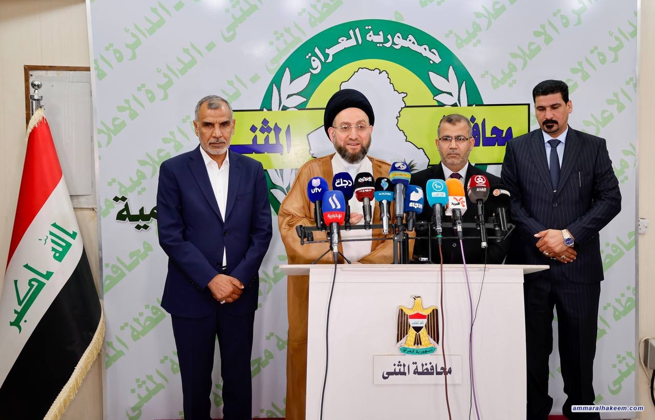 سماحته دعا لاستثمار بادية السماوة ورحاب المثنى، معربا عن سعادته لاستثمار بعض هذا الخزين الاستراتيجي الكبير في المحافظة، ويتطلب العمل على تحويلها لمحطة سياحية واقتصادية داعيا شيوخ العشائر للمساهمة في السلم المجتمعي، وشددنا على مواجهة المخدرات وانتشارها المخيف وهذا تحد كبير على الجميع مواجهته، وضرورة التمييز بين المتاجر وبين المتعاطي، فالأخير مريض يحتاج مصحة فيما أن الأول مجرم يحتاج إلى سجن، وأن الخلط بينهم يحول المتعاطي إلى متاجر، ودعا أيضا لاستثمار الهدوء السياسي والأمني والوئام المجتمعي بتقديم الخدمات مبينا في المؤتمر الصحفي أن زيارته إلى المثنى تأتي في إطار التواصل مع أهله في المحافظات والإطلاع على أوضاع المحافظة والمساهمة بحل مشاكلها.