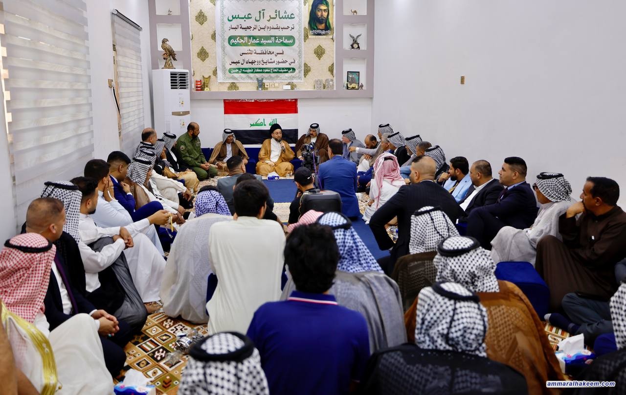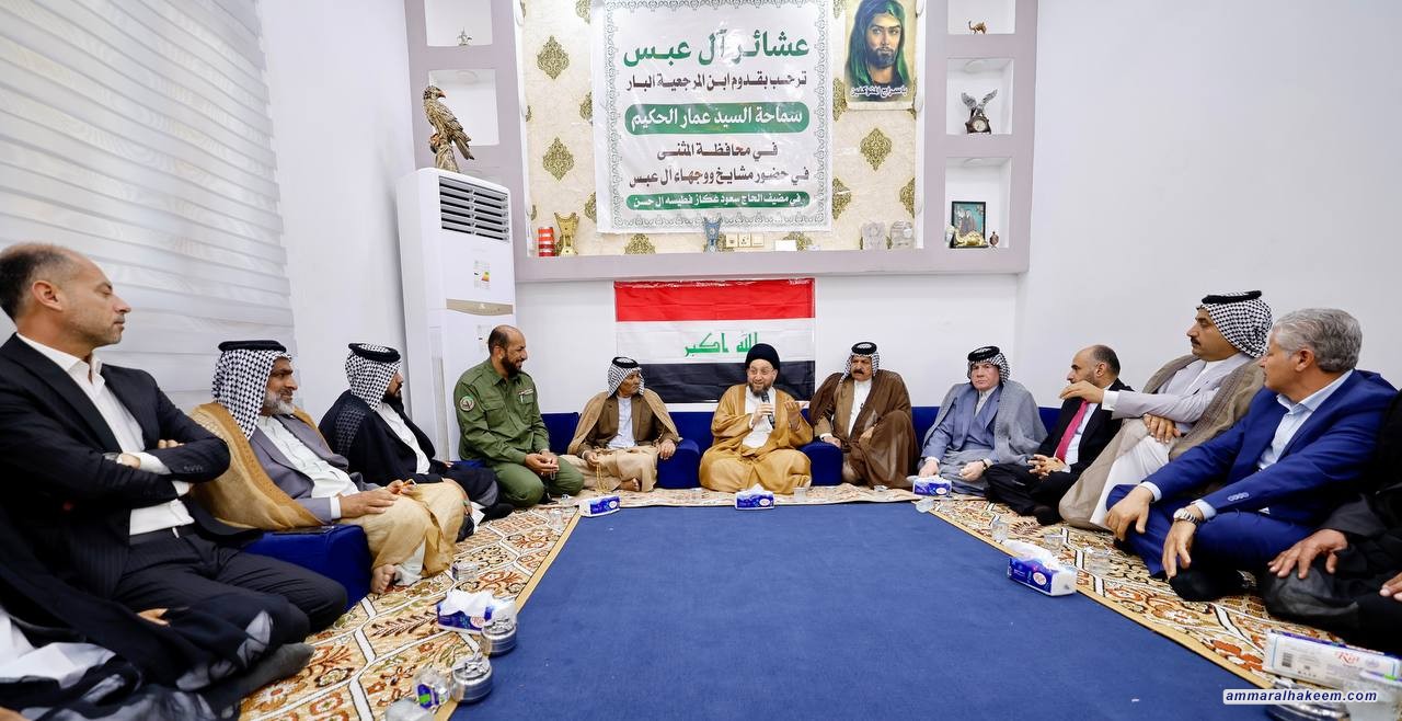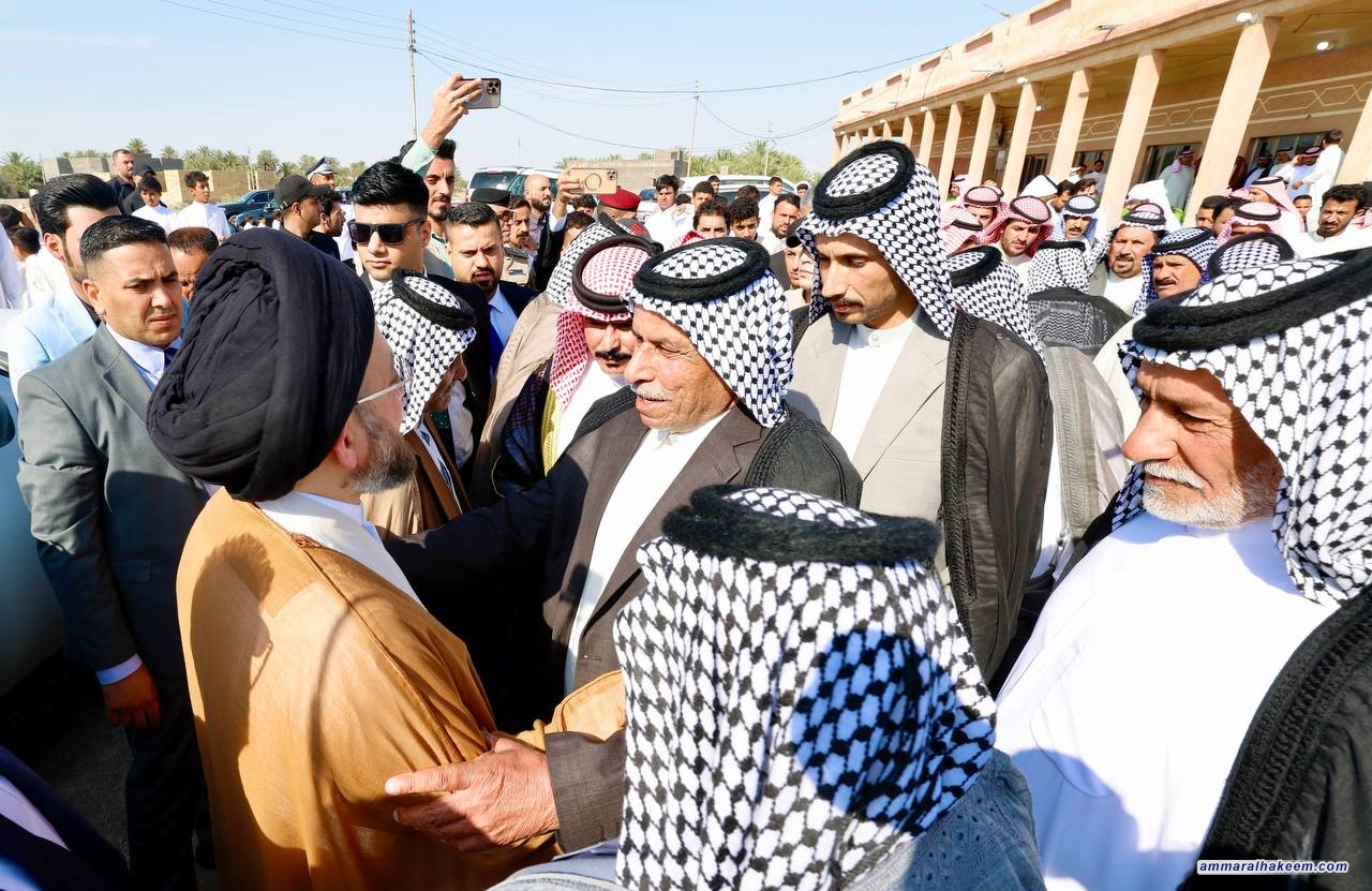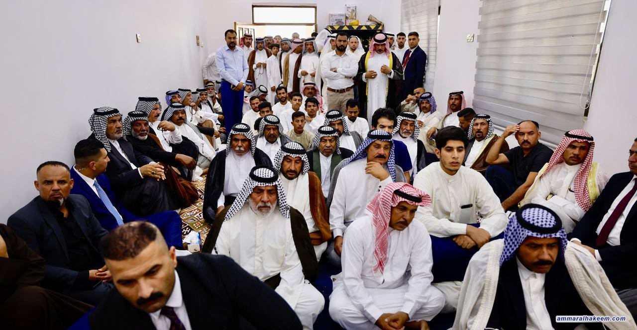عند قبيلة آل عبس، قبيلة الشهداء وفي مضيف جناب الشيخ سعود عكاز آلبو ماجد، أعرب السيد عمار الحكيم رئيس تيار الحكمة الوطني عن تقديره العالي للمواقف المدافعة عن الدين والمقدسات لقبيلة آل عبس الكريمة، مؤكدا أن الشعوب تقوى بشهدائها وتضحياتها مبينا أن العراق عانى من تحديات كبيرة أمنية وسياسية ومجتمعية ودفع ضريبة الانتماء لأهل البيت "عليهم السلام" .