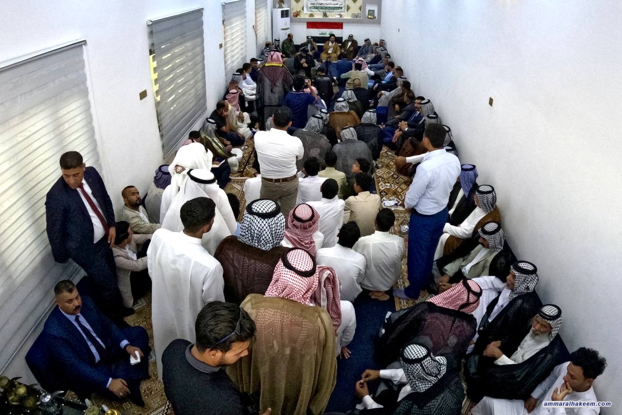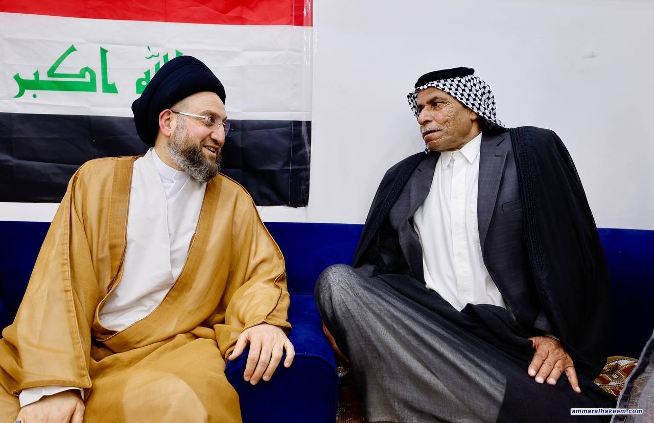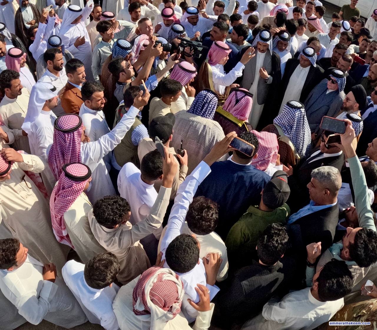 عند قبيلة آل عبس، قبيلة الشهداء وفي مضيف جناب الشيخ سعود عكاز آلبو ماجد، أعرب السيد عمار الحكيم رئيس تيار الحكمة الوطني عن تقديره العالي للمواقف المدافعة عن الدين والمقدسات لقبيلة آل عبس الكريمة، مؤكدا أن الشعوب تقوى بشهدائها وتضحياتها مبينا أن العراق عانى من تحديات كبيرة أمنية وسياسية ومجتمعية ودفع ضريبة الانتماء لأهل البيت "عليهم السلام" .
