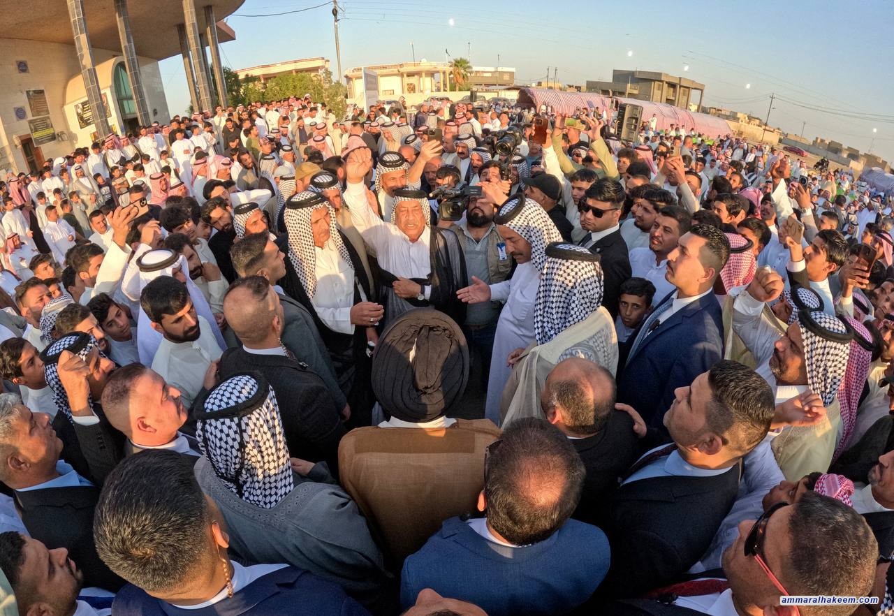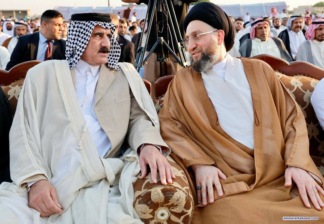 من مضارب بني حجيم وفي مضيف جناب الشيخ نوري عزارة ال معجون التقى السيد عمار الحكيم رئيس تيار الحكمة الوطني جمعا كبيرا من شيوخ ووجهاء محافظة المثنى، مستذكرا سيرة الراحل الشيخ سامي عزارة آل معجون، والمحطات التاريخية التي جمعته ببني حجيم في مواجهة الدكتاتورية والإرهاب .
