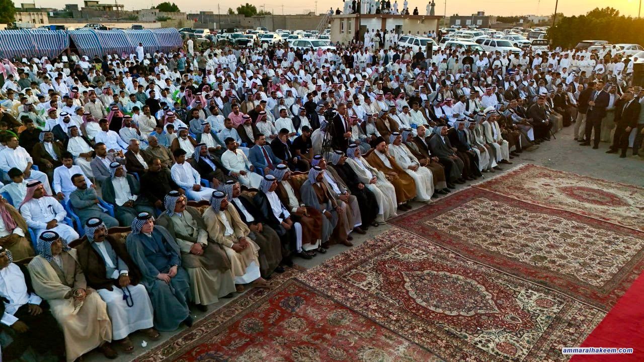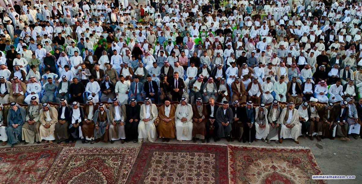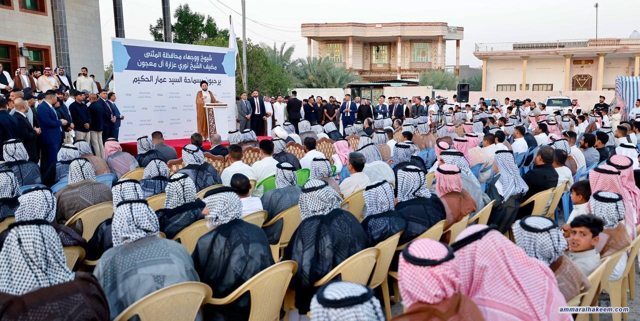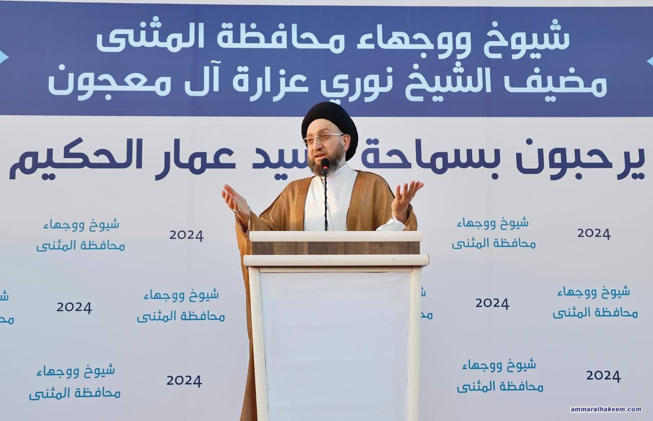 سماحته أشاد بدور العشائر في المثنى بتحقيق الأمن والاستقرار المجتمعي، مؤكدا أن العشيرة مؤسسة فيها أعراف وقوانين، وأن العشائر هي الذراع الضارب للمرجعية ومع الشعائر الحسينية تتكون ثلاثية حفظ المجتمع مستذكرا أثر فتوى الجهاد الدفاعي للمرجعية الدينية ودور العشائر العراقية في تلبية الفتوى ودحر الإرهاب، وقال إن العراق عانى من تخادم البعث وأزلام النظام مع الجماعات الإرهابية.