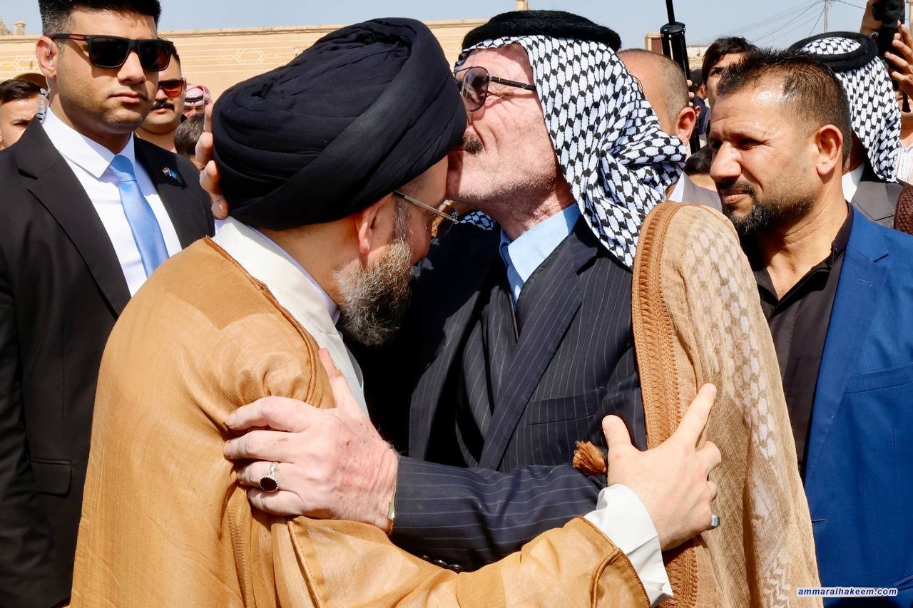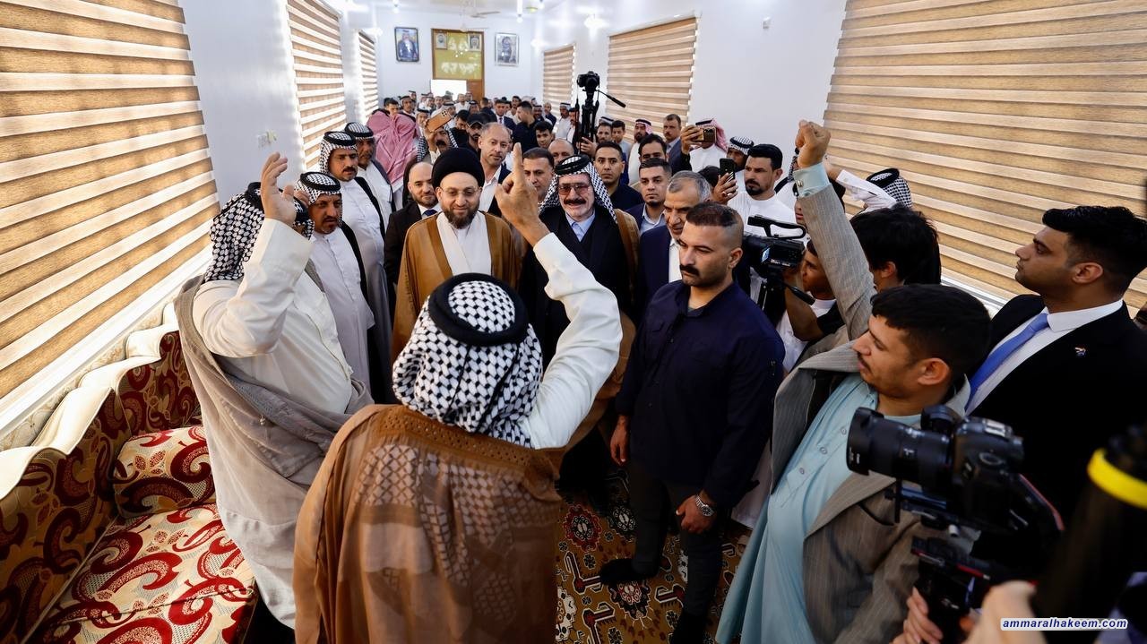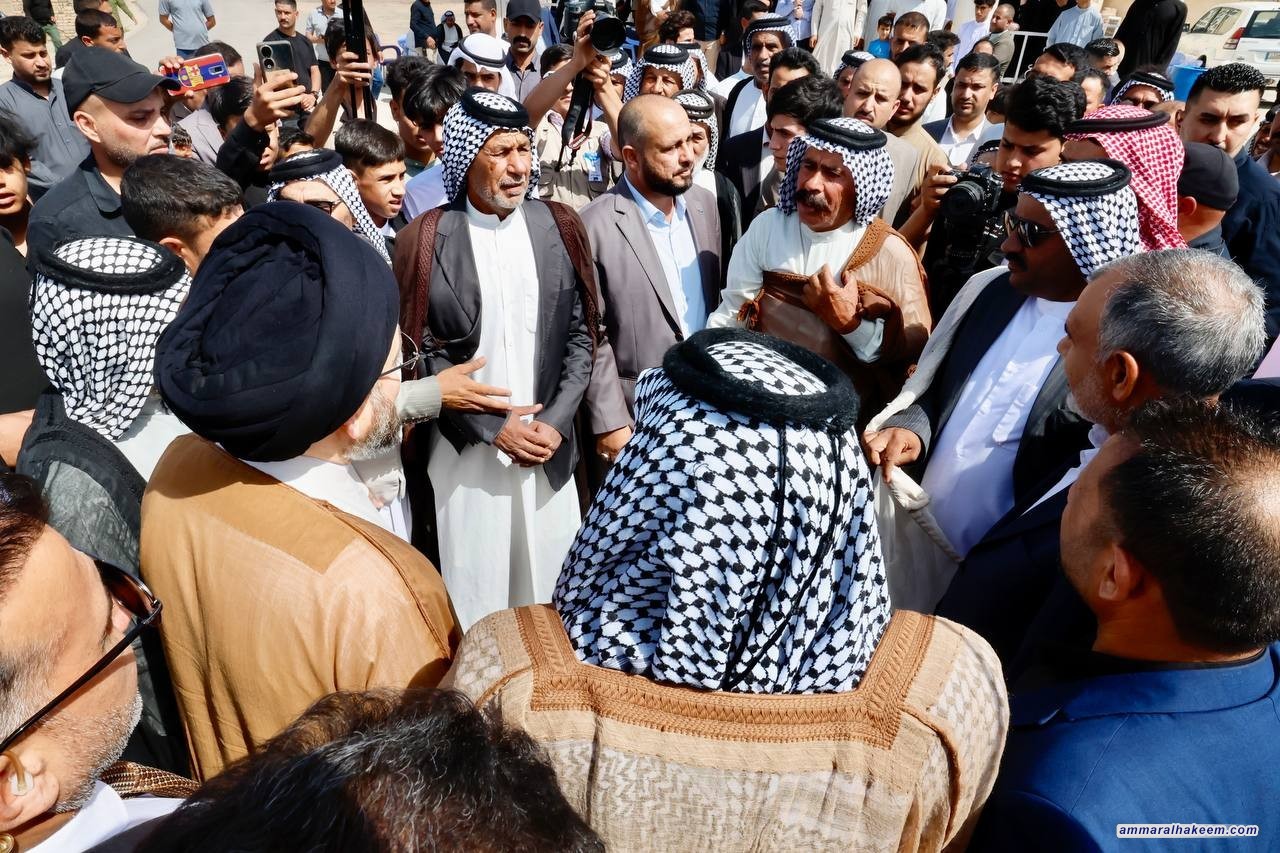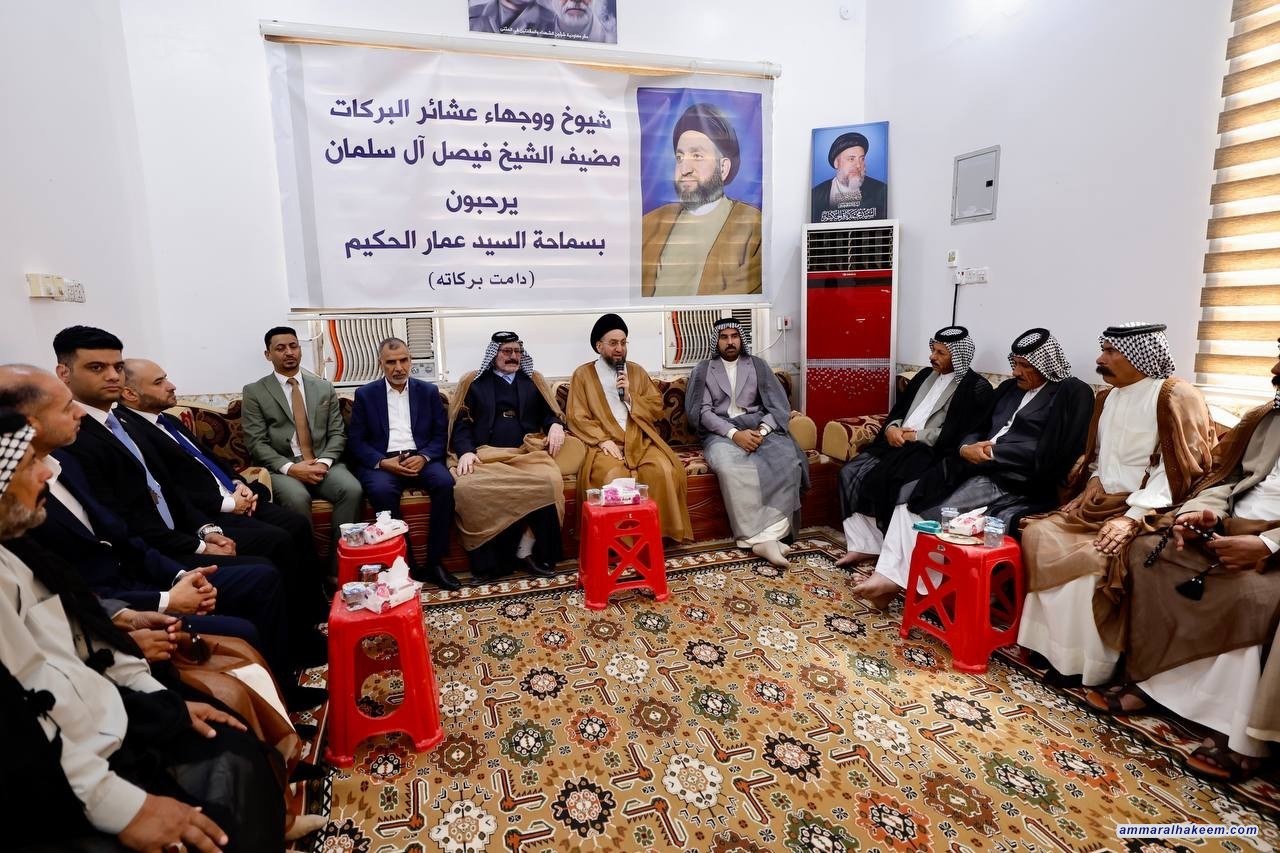في اليوم الثاني من زيارته إلى محافظة المثنى العزيرة، التقى السيد عمار الحكيم رئيس تيار الحكمة الوطني في مضيف الشيخ فيصل آل سلمان البركي في ناحية الكرامة، جمعا من شيوخ ووجهاء عشيرة البركات والعشائر المجاورة لها، وقال في حديثنا معهم "نتواصل مع أهلنا في المحافظات وعشائرنا العراقية الكريمة للاطلاع على الواقع والإسهام قدر الإمكان بدعمها وإسنادها وهذه اللقاءات محطات مهمة لاستذكار التاريخ المشترك الذي يجمعنا بالعشائر العراقية لاسيما عشيرة البركات العزيزة" محملا الأجيال التي عاصرت مرحلة الديكتاتورية مسؤولية تعريف الأجيال الجديدة عن تلك المرحلة وصعوبتها ومستوى الإجرام والتهميش التي عاشها الشعب خاصة أبناء الوسط والجنوب وقصص المقابر الجماعية وزنازين التعذيب ومنع الموالين من زيارة سيد الشهداء "عليه السلام" داعيا لمعرفة قيمة الحرية التي ننعم بها اليوم وضرورة التعريف بها.