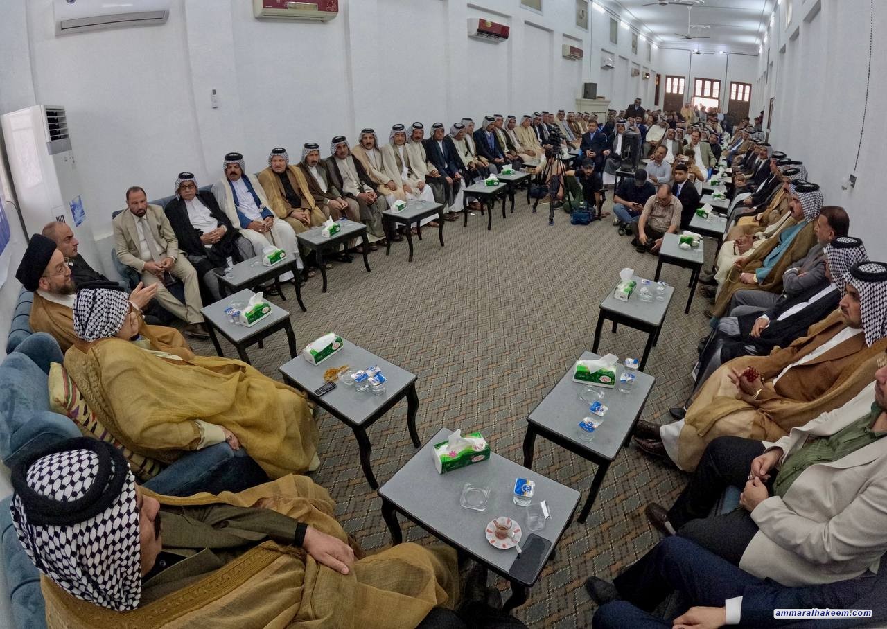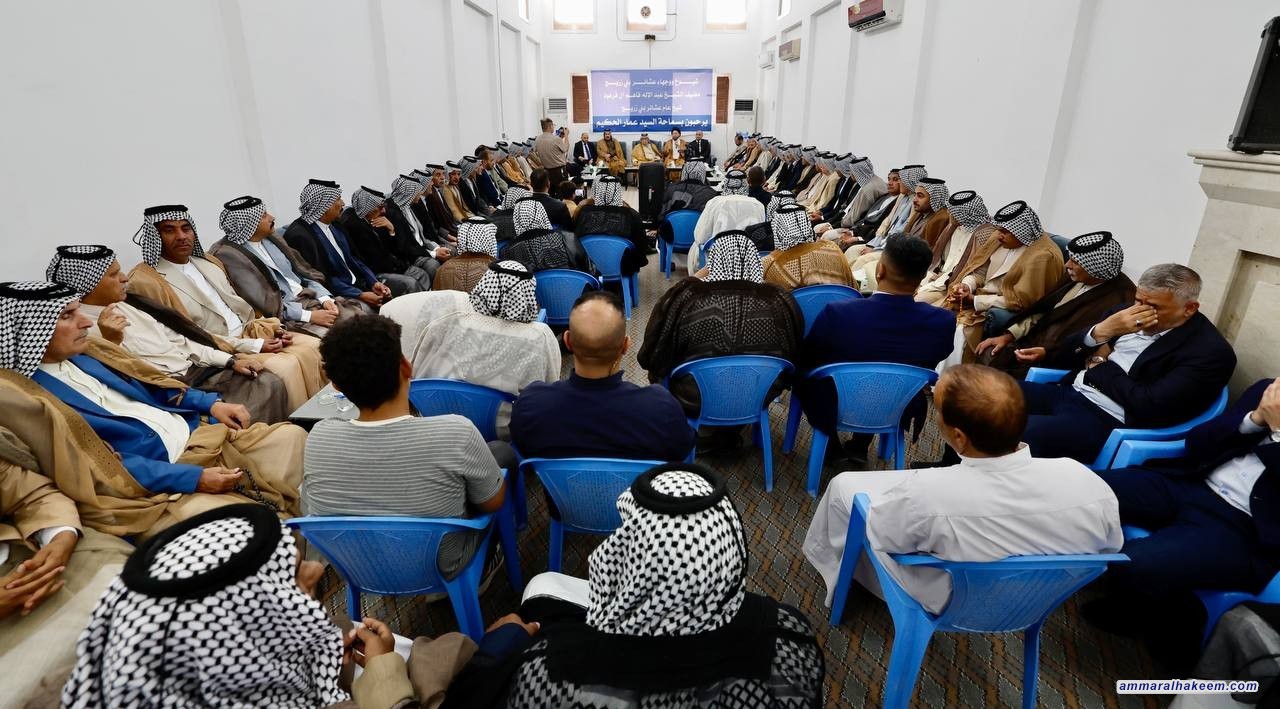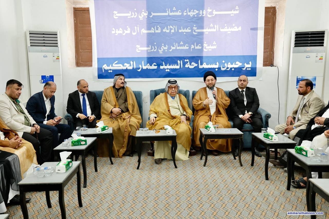 من انطلاقة ثورة العشرين الخالدة، من الرميثة المجاهدة، كان للسيد عمار الحكيم رئيس تيار الحكمة الوطني وقفة في مضيف جناب الشيخ عبد الإله فاهم آل فرهود، حيث التقى جمعا من شيوخ ووجهاء بني زريج وعشائر الرميثة، مستذكرا العلاقة مع بني زريج مشيدا بها حيث صاحبتها التضحيات والدماء والدموع لبناء العراق من الدكتاتورية إلى مواجهة الإرهاب، مبينا أن العراق خرج من عنق الزجاجة وبدأ يسير في الاتجاه الصحيح ما جعله محط إعجاب دول المنطقة والعالم.