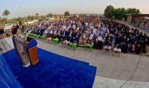 سماحته اكد على خدمة الناس حيث أن الأية الشريفة "الَّذِينَ إِنْ مَكَّنَّاهُمْ فِى الْأَرْضِ أَقَامُوا الصَّلَاةَ وَآتَوُا الزَّكَاةَ وَأَمَرُوا بِالْمَعْرُوفِ وَنَهَوْا عَنِ الْمُنْكَرِ وَلِلَّهِ عَاقِبَةُ الْأُمُور" تمثل منهجنا الذي نعمل عليه مشددا على تدين السياسة لا مع تسييس الدين"