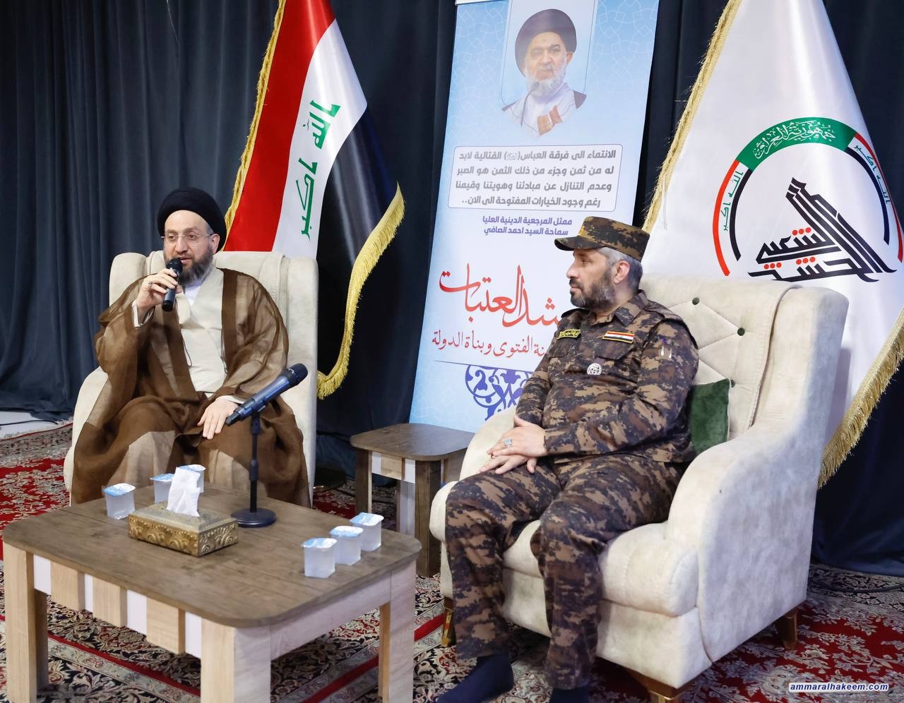 السيد الحكيم يزور فرقة العباس عليه السلام القتاليّة ويشيد بادوارها البطولية