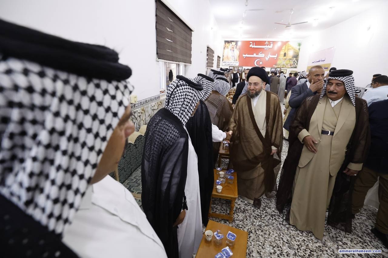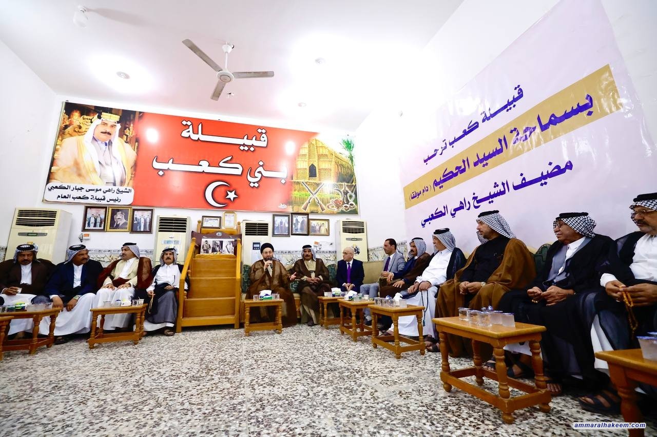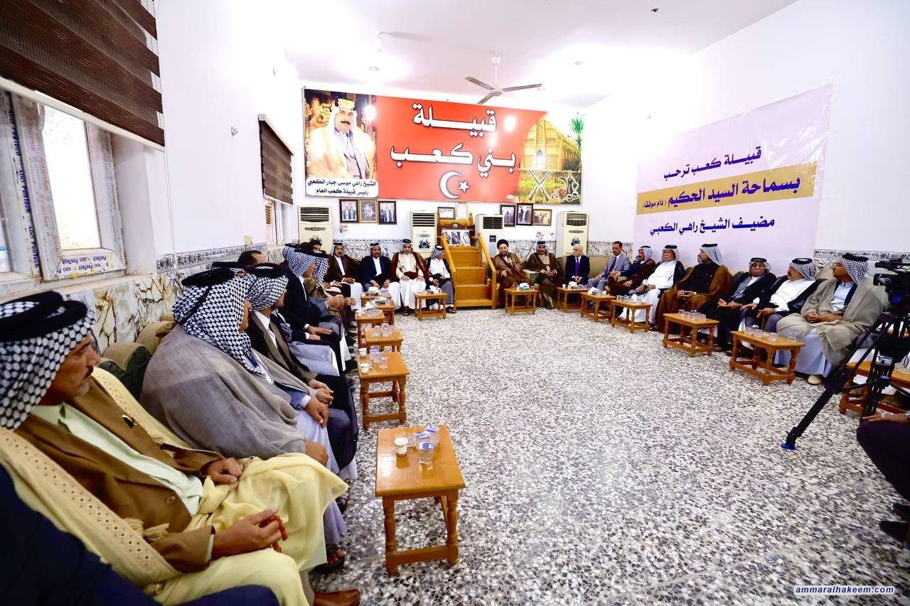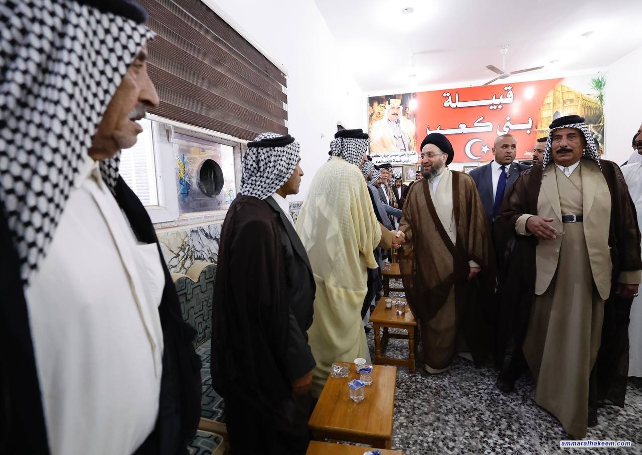 في مضيف جناب الشيخ راهي الكعبي، التقى السيد عمار الحكيم رئيس تيار الحكمة الوطني جمعا من شيوخ ووجهاء قبيلة بني كعب مستذكرا تاريخا حافلا بالتضحيات والدماء والدموع مؤكدا أهمية حفظ ركائز المجتمع المتمثلة بالمرجعية الدينية المباركة والعشائر العراقية والشعائر الحسينية باعتبار هذه الركائز مصدر قوة للمجتمع، وهي الثلاثية التي حفظت العراق.