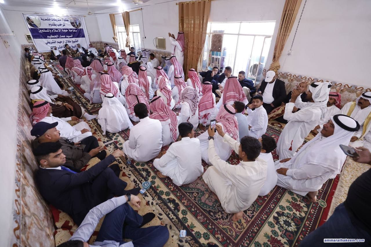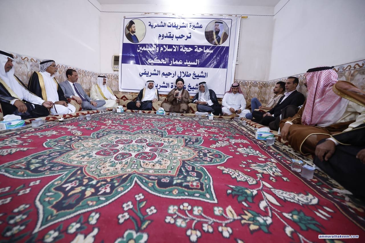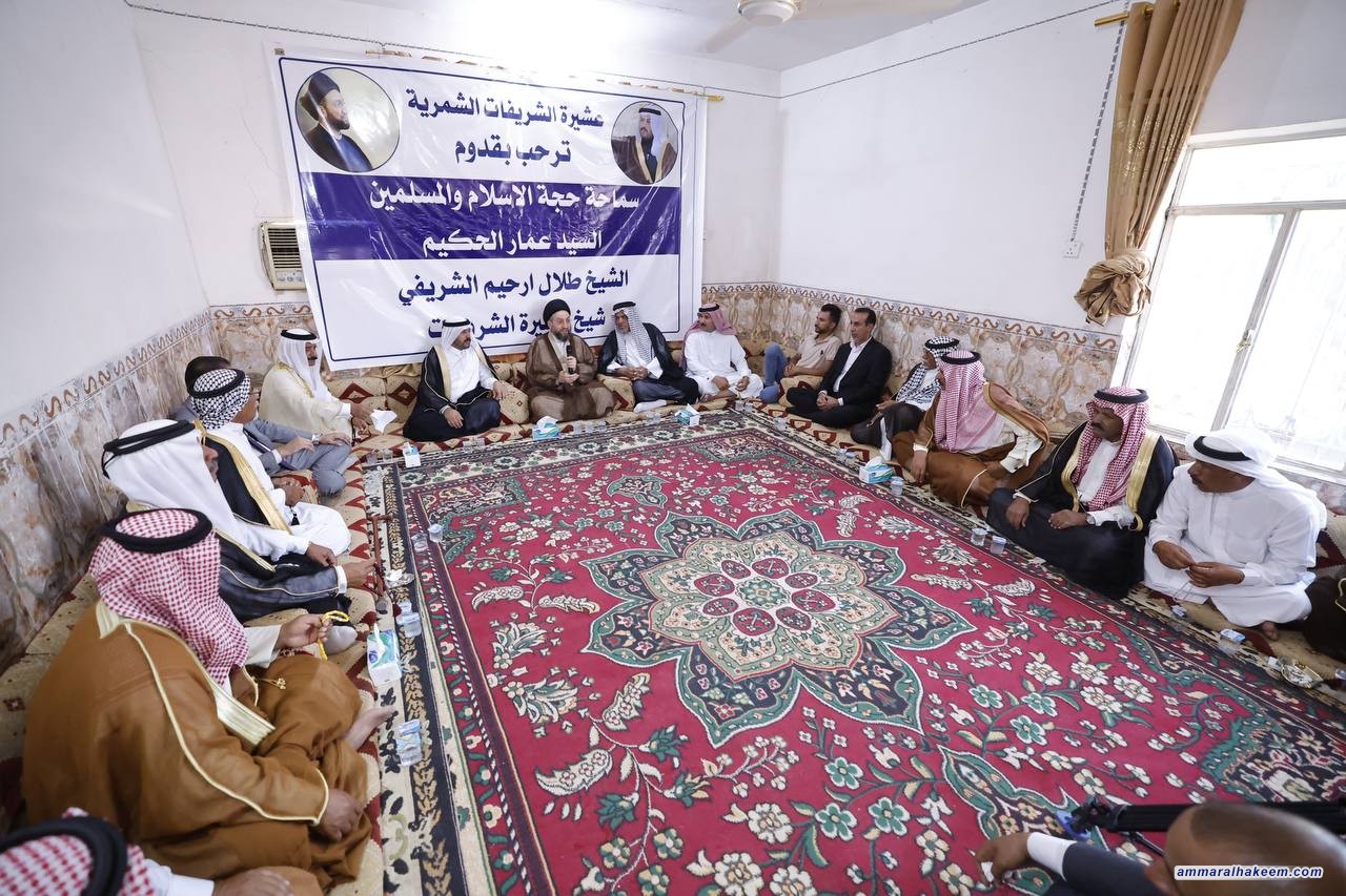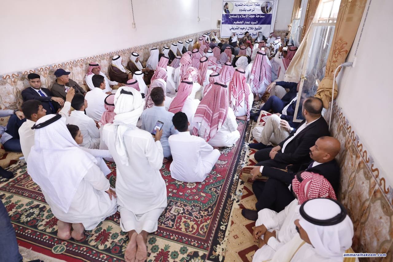 التقى ألسيد عمار الحكيم رئيس تيار الحكمة الوطني في مضيف عشيرة الشريفات الشمرية، مضيف شيخها العام أخينا جناب الشيخ طلال ارحيم الشريفي، جمعا من الشيوخ والوجهاء، مشيدا بالنسيج الاجتماعي العراقي والتماسك الذي فكك مخططات ضرب المجتمع العراقي مع بعضه، وقال أن العشائر العراقية مثابة من مثابات حفظ المجتمع لما تمتلكه من تنوع.