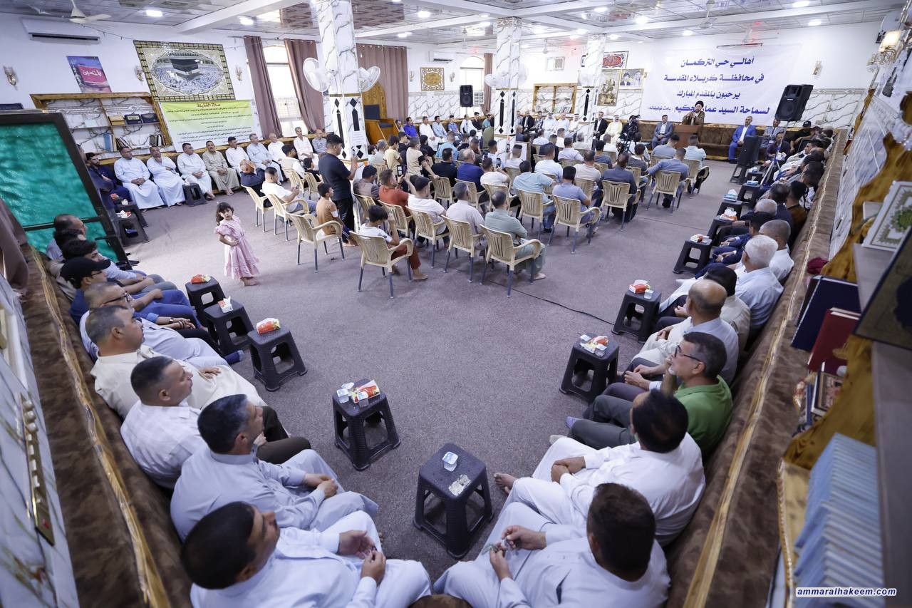 في لقائه مع جمع غفير من التركمان في مدينة كربلاء المقدسة استذكر السيد عمار الحكيم رئيس تيار الحكمة الوطني العلاقة التي جمعته بهم، مبينا أنهم أهل للوفاء والإخلاص والتضحية، حيث إنهم تعرضوا للظلم والجور و من المؤسف أن لايحصلوا على كامل حقوقهم بعد 2003 ، والتركمان في تلعفر كانوا خط الصد الأول ضد الإرهاب مشيرا إلى التضحيات التي قدمها العراقيون من أجل الإسلام والعراق، وأن الله يمهل ولا يهمل إنصاف الشهداء مؤكدا أن التركمان من أكثر المندكين بالشعائر الحسينية.
