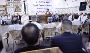 سماحته شدد على تكاملية الركائز التي حفظت المجتمع العراقي المتمثلة بالمرجعية الدينية والعشائر العراقية والشعائر الحسينية مبينا أن العراق اليوم أقوى من أي وقت مضى وسيكون محور نهاية التاريخ كما كان في أوله.