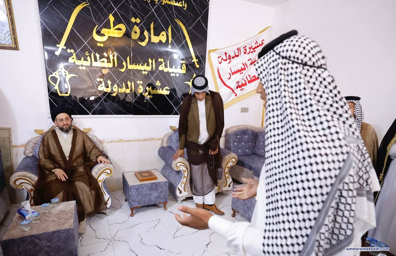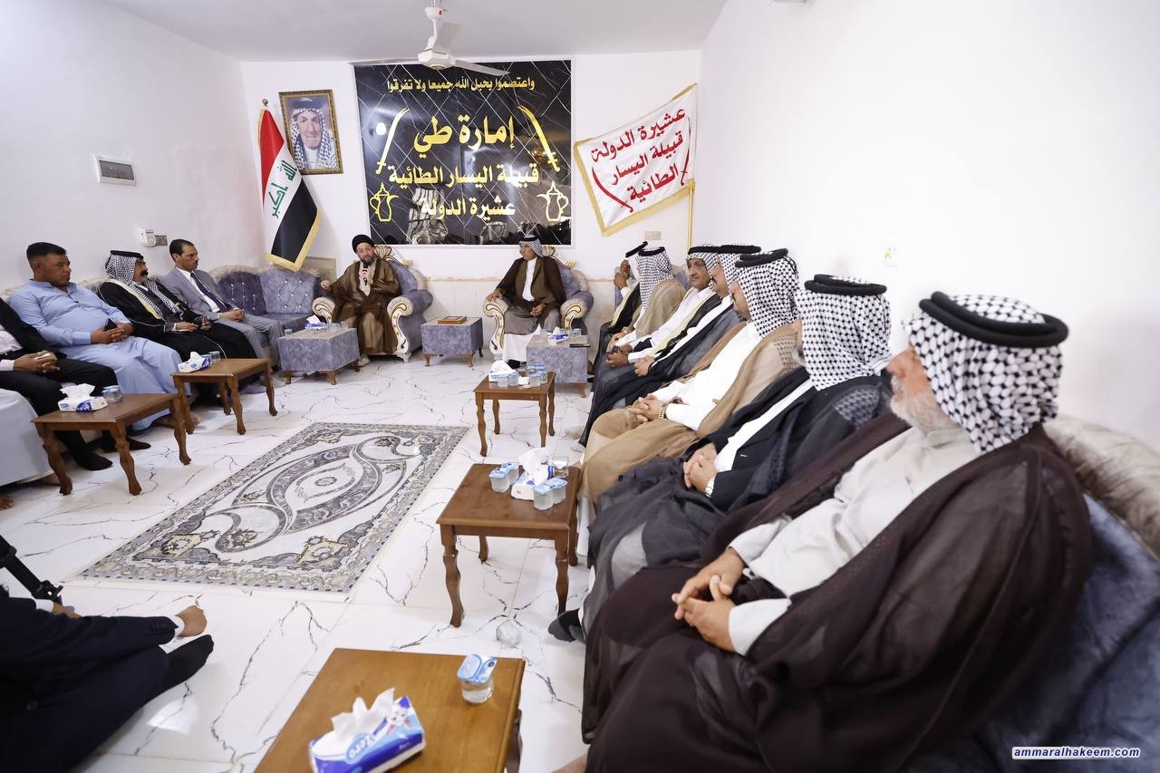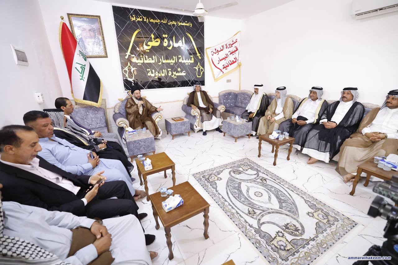 في مضيف جناب الشيخ شبيب مخيف اليساري شيخ عشيرة الدولة من قبيلة اليسار الطائية التقى السيد عمار الحكيم رئيس تيار الحكمة الوطني عددا من شيوخ ووجهاء اليسار وكربلاء المقدسة، وأشاد بالأدوار التي لعبتها العشائر العراقية عبر التاريخ واستعرض طبيعة التحديات التي عاشها العراق أمنيا وسياسيا واجتماعيا، مضيفا بقوله إن العراق عاش ظروفا سياسية صعبة، فضلا عن التحديات الأمنية التي ما كانت لتنتهي لولا تضحيات العراقيين ووقفة العشائر الأصيلة وتلبيتها لنداء المرجعية الدينية العليا مبينا أيضا أن العراق على الطريق الصحيح وأنه سينجح في تحدي الخدمات والإعمار كما نجح في التحديات السابقة.
