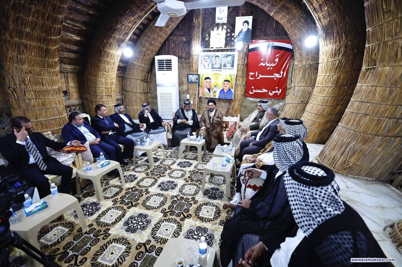 في قضاء الهندية بمحافظة كربلاء المقدسة وفي مضيف جناب الشيخ محمد عبد الأمير رئيس قبيلة الجراح - بني حسن، التقى السيد عمار الحكيم رئيس تيار الحكمة الوطني جمعا من الشيوخ والوجهاء مجددا التأكيد على أهمية التواصل مع العشائر العراقية مشيدا بتاريخ بني حسن وخدمتهم لزوار أهل البيت "عليهم السلام"