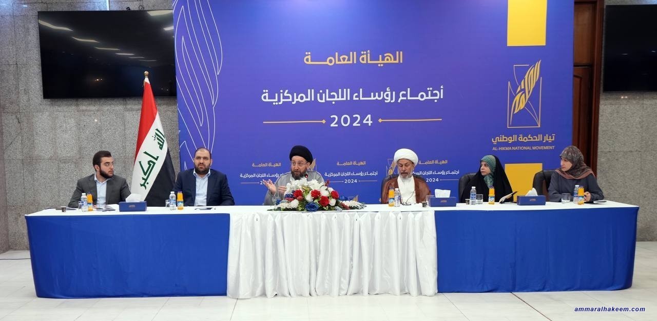 في لقائه مع رئاسات اللجان المركزية للهيأة العامة لتيار الحكمة الوطني، قال السيد عمار الحكيم رئيس تيار الحكمة الوطني "