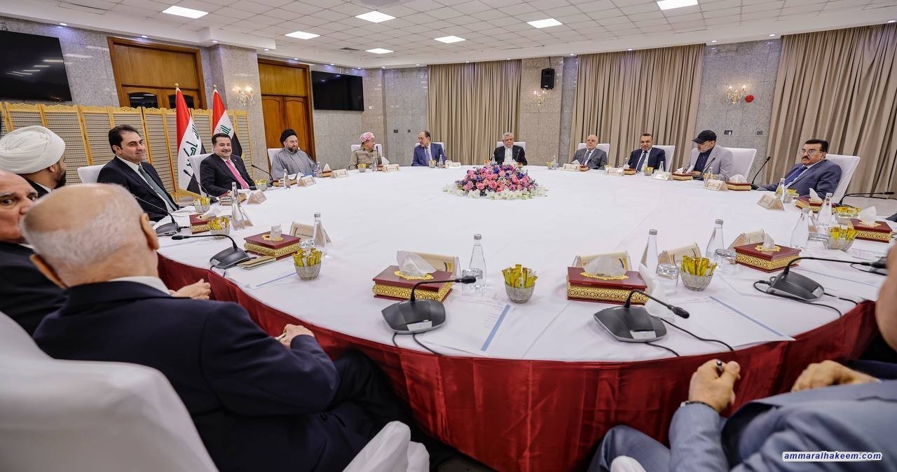 بحضور دولة رئيس الوزراء وقادة الإطار التنسيقي، استقبل السيد عمار الحكيم رئيس تيار الحكمة الوطني رئيس الحزب الديمقراطي الكردستاني الأستاذ مسعود بارزاني والوفد المرافق له، وتم خلال اللقاء استعراض التطورات السياسية والأمنية في العراق والمنطقة والعالم، حيث تم تأكيد وحدة الموقف الوطني تجاه مختلف القضايا التي تتعلق بمصلحة العراق، وأهمية استمرار الجهود القصوى لحل مشكلة انتخاب رئيس مجلس النواب ومساعدة القوى السياسية المعنية بحلها.